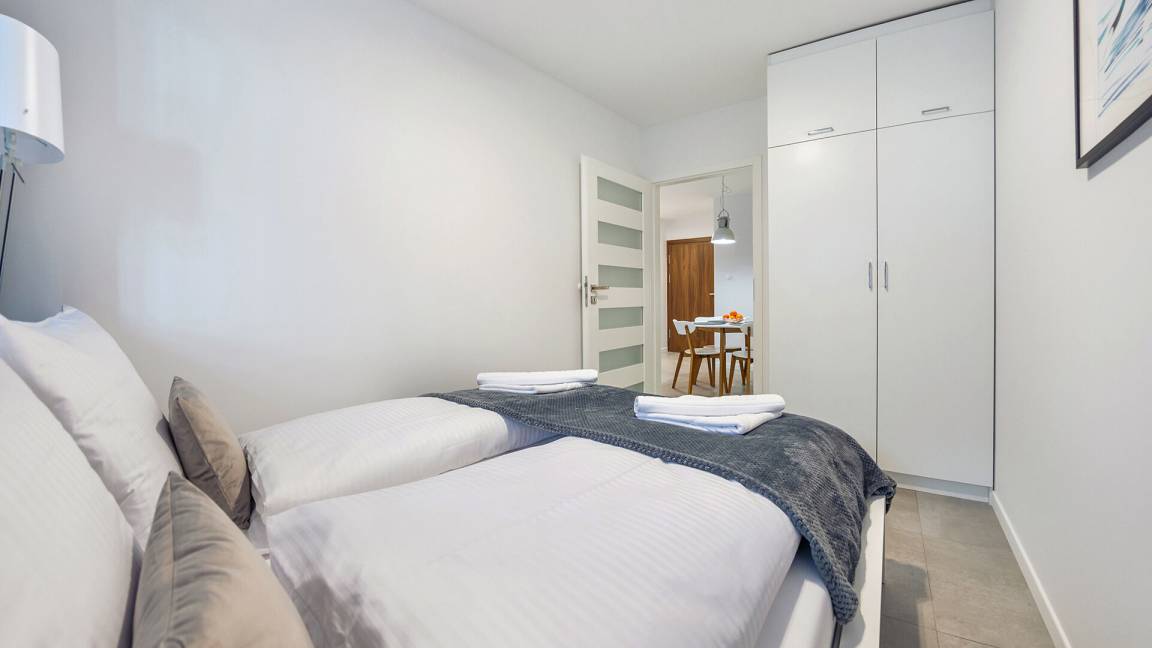 Die Apartments im Resorts Kołobrzeg liegen im ruhigen, westlichen Teil der Stadt, umgeben vom NATURA-2000-Park und nur wenige Minuten vom breiten Weststrand sowie einem Hundestrand entfernt. Die Lage bietet saubere Luft, direkten Kontakt zur Natur und Zugang zu Rad- und Spazierwegen. Die Apartments sind hochwertig ausgestattet und verfügen über voll ausgestattete Küchenzeilen sowie große Terrassen. Auf dem Gelände stehen nummerierte Außenparkplätze und Tiefgaragenplätze gegen Aufpreis zur Verfügung, zudem gibt es einen öffentlichen, kostenpflichtigen Parkplatz vor dem Gebäude. Gästen stehen ein täglich geöffneter Pool sowie eine Sauna zur Verfügung. Kołobrzeg bietet das ganze Jahr über zahlreiche Freizeit- und Kulturangebote sowie eine vielfältige Gastronomie.