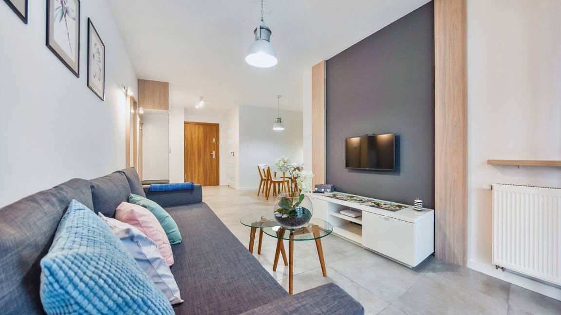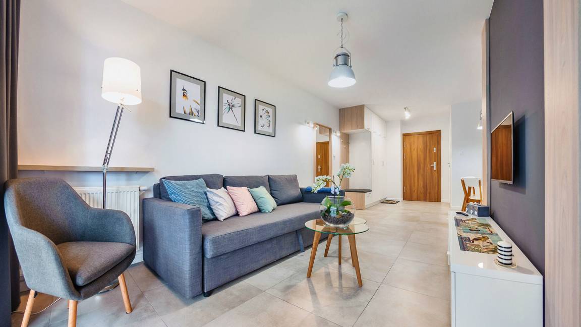 • Haustiere sind in der ausgewählten Wohnung erlaubt. Die Kosten für den Aufenthalt mit einem Haustier betragen 40 PLN pro Tag.