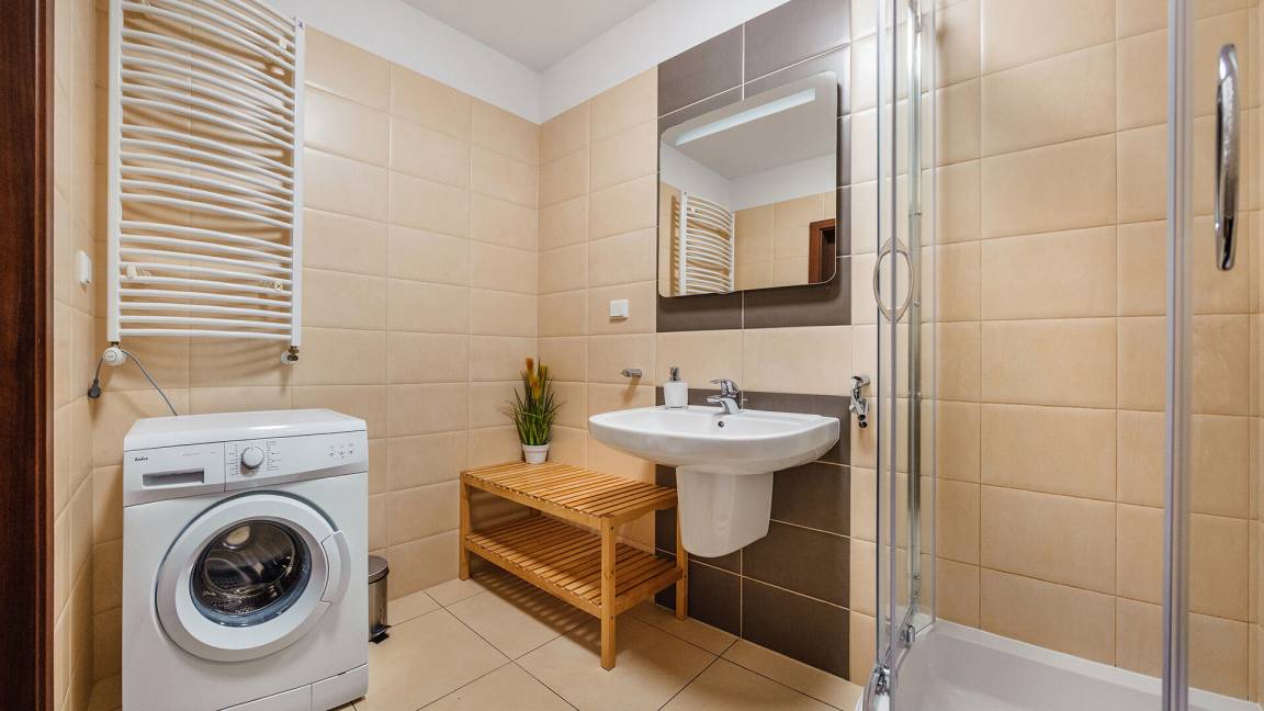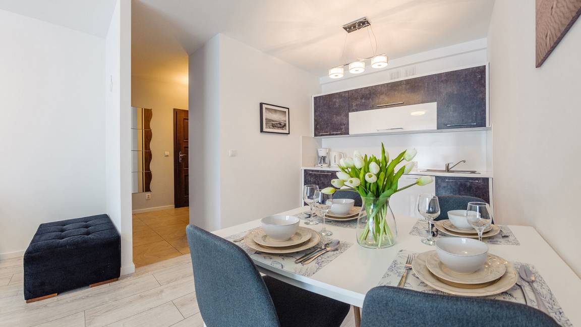 • Haustiere sind in der ausgewählten Wohnung erlaubt. Die Kosten für den Aufenthalt mit einem Haustier betragen 40 PLN pro Tag.