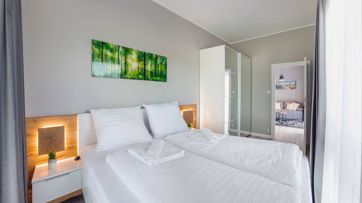 Die Apartments im Resorts Kołobrzeg liegen im ruhigen, westlichen Teil der Stadt, umgeben vom NATURA-2000-Park und nur wenige Minuten vom breiten Weststrand sowie einem Hundestrand entfernt. Die Lage bietet saubere Luft, direkten Kontakt zur Natur und Zugang zu Rad- und Spazierwegen. Die Apartments sind hochwertig ausgestattet und verfügen über voll ausgestattete Küchenzeilen sowie große Terrassen. Auf dem Gelände stehen nummerierte Außenparkplätze und Tiefgaragenplätze gegen Aufpreis zur Verfügung, zudem gibt es einen öffentlichen, kostenpflichtigen Parkplatz vor dem Gebäude. Gästen stehen ein täglich geöffneter Pool sowie eine Sauna zur Verfügung. Kołobrzeg bietet das ganze Jahr über zahlreiche Freizeit- und Kulturangebote sowie eine vielfältige Gastronomie.