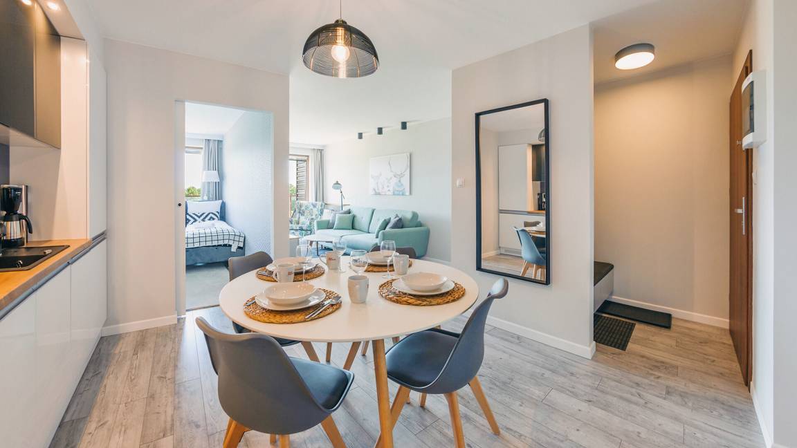 Die Apartments im Resorts Kołobrzeg liegen im ruhigen, westlichen Teil der Stadt, umgeben vom NATURA-2000-Park und nur wenige Minuten vom breiten Weststrand sowie einem Hundestrand entfernt. Die Lage bietet saubere Luft, direkten Kontakt zur Natur und Zugang zu Rad- und Spazierwegen. Die Apartments sind hochwertig ausgestattet und verfügen über voll ausgestattete Küchenzeilen sowie große Terrassen. Auf dem Gelände stehen nummerierte Außenparkplätze und Tiefgaragenplätze gegen Aufpreis zur Verfügung, zudem gibt es einen öffentlichen, kostenpflichtigen Parkplatz vor dem Gebäude. Gästen stehen ein täglich geöffneter Pool sowie eine Sauna zur Verfügung. Kołobrzeg bietet das ganze Jahr über zahlreiche Freizeit- und Kulturangebote sowie eine vielfältige Gastronomie.
