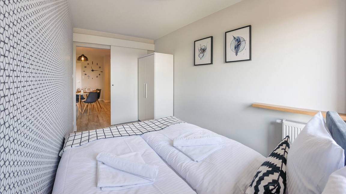• Haustiere sind in der ausgewählten Wohnung erlaubt. Die Kosten für den Aufenthalt mit einem Haustier betragen 40 PLN pro Tag.
