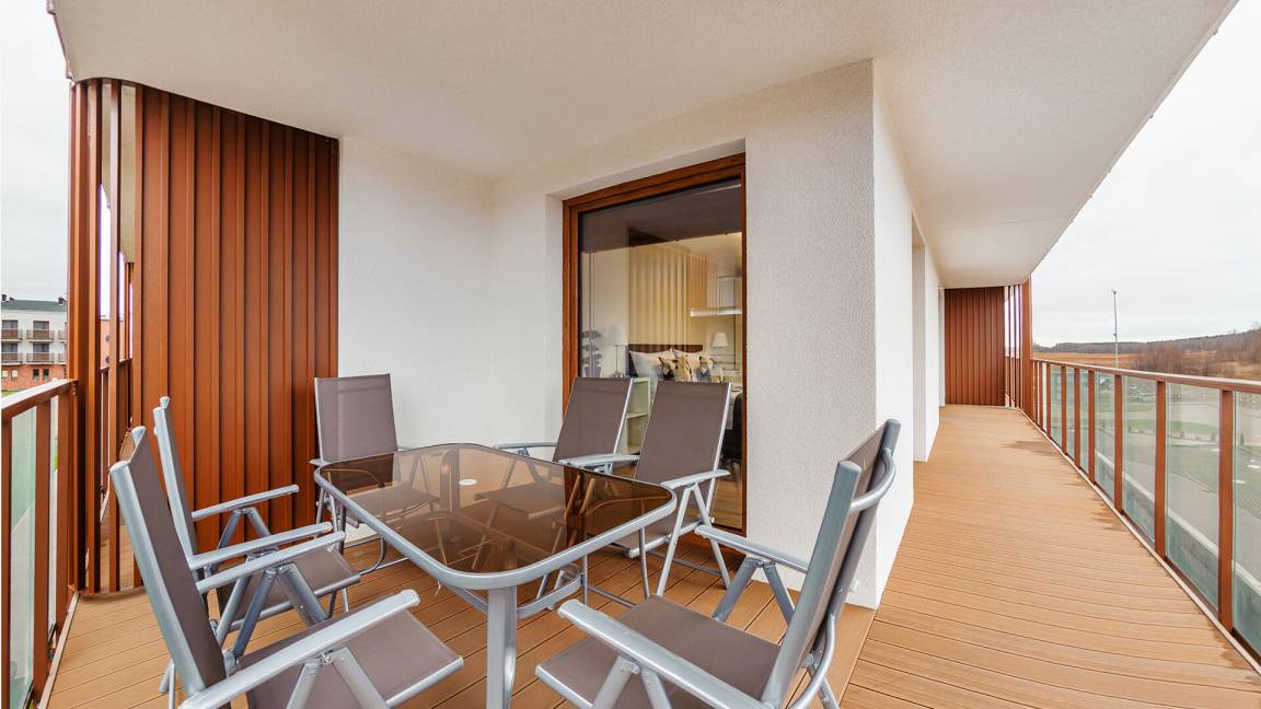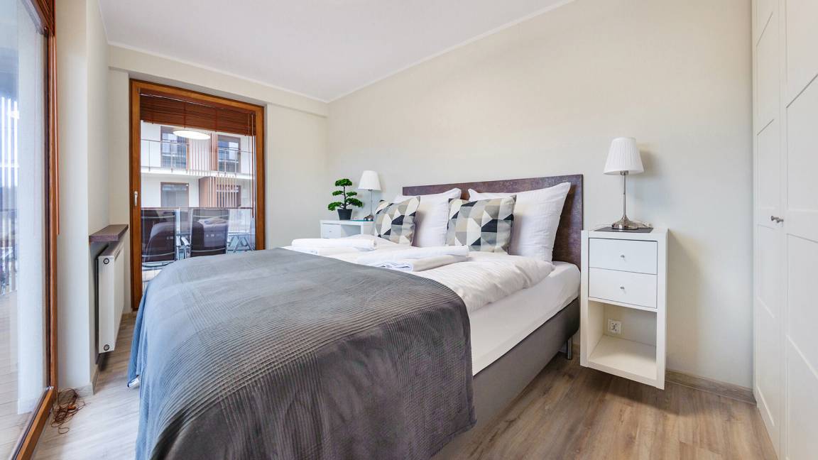 Die Apartments im Objekt Resorts Kołobrzeg befinden sich im westlichen Teil von Kołobrzeg, abseits des städtischen Trubels, umgeben vom Grün des NATURA-2000-Parks. Diese Lage garantiert saubere Luft, malerische Ausblicke und direkten Kontakt zur Natur. Die Plażowa-Straße mit ihren breiten Gehwegen und Radwegen ist ein Teil der R10-Fahrradroute. Ein fünfminütiger Spaziergang über einen direkten Zugang zum Meer reicht aus, um den breiten, sandigen „Weststrand" zu erreichen; ganz in der Nähe befindet sich auch ein Hundestrand. Alle Apartments sind hochwertig ausgestattet und verfügen über funktionale, voll ausgestattete Küchenzeilen sowie geräumige Terrassen mit Blick auf den Innenhof oder das Grün des NATURA-2000-Parks. Vor dem Gebäude gibt es einen öffentlichen, kostenpflichtigen Stadtparkplatz (begrenzte Anzahl an Stellplätzen). Auf dem Gelände stehen ein nummerierter Außenparkplatz sowie Parkplätze in der Tiefgarage zur Verfügung, die den meisten Apartments zugeordnet sind und gegen Aufpreis genutzt werden können. Im Objekt befindet sich ein Schwimmbad, das täglich von 10:00 bis 21:00 Uhr geöffnet ist, sowie eine Sauna, die täglich von 16:00 bis 21:00 Uhr geöffnet ist. Der Pool befindet sich im Gebäude A; aus Gebäude B gibt es keinen direkten Zugang zu Gebäude A.