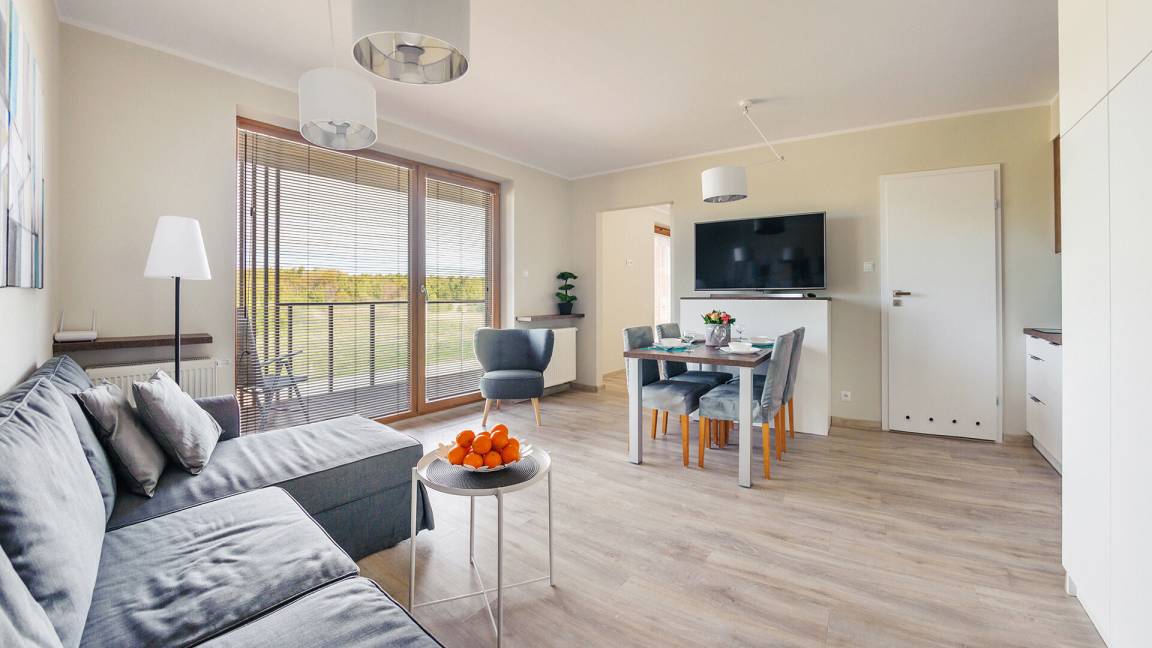 Die Apartments im Resorts Kołobrzeg liegen im ruhigen, westlichen Teil der Stadt, umgeben vom NATURA-2000-Park und nur wenige Minuten vom breiten Weststrand sowie einem Hundestrand entfernt. Die Lage bietet saubere Luft, direkten Kontakt zur Natur und Zugang zu Rad- und Spazierwegen. Die Apartments sind hochwertig ausgestattet und verfügen über voll ausgestattete Küchenzeilen sowie große Terrassen. Auf dem Gelände stehen nummerierte Außenparkplätze und Tiefgaragenplätze gegen Aufpreis zur Verfügung, zudem gibt es einen öffentlichen, kostenpflichtigen Parkplatz vor dem Gebäude. Gästen stehen ein täglich geöffneter Pool sowie eine Sauna zur Verfügung. Kołobrzeg bietet das ganze Jahr über zahlreiche Freizeit- und Kulturangebote sowie eine vielfältige Gastronomie.