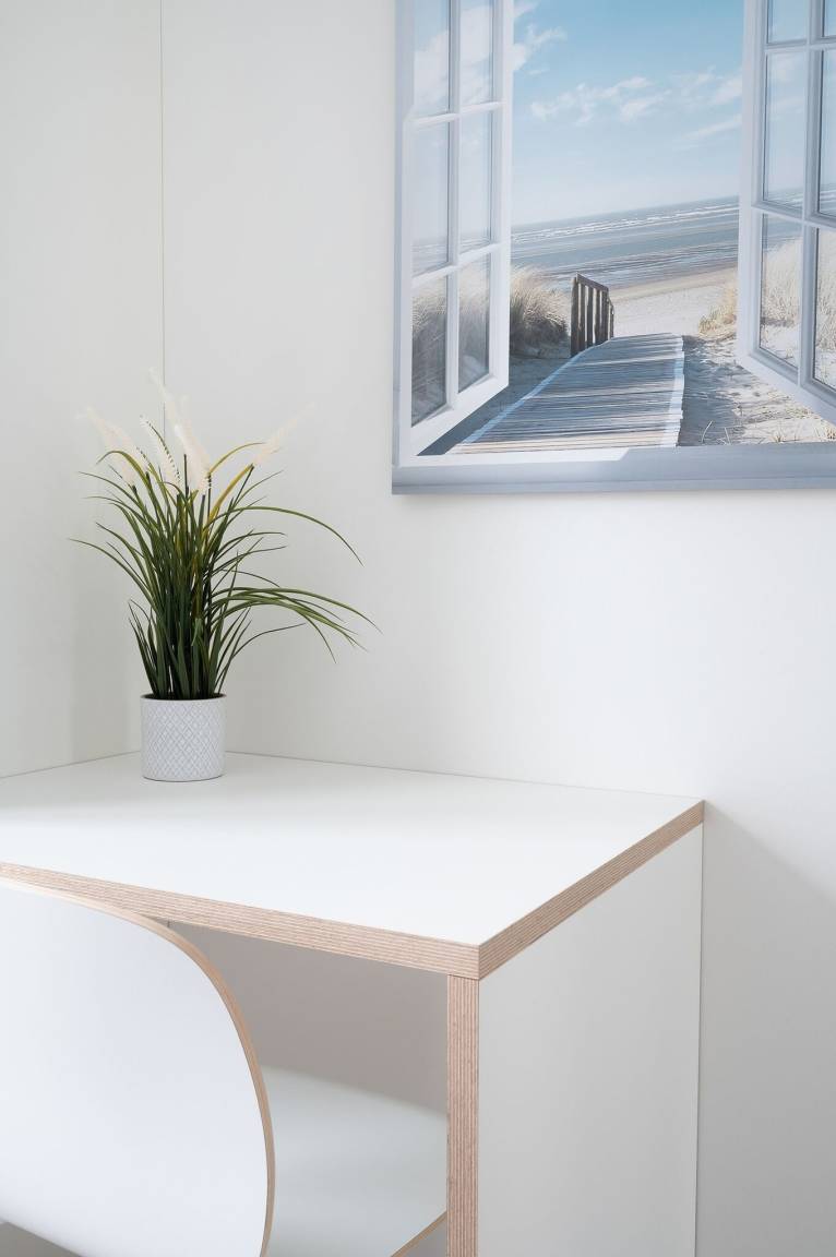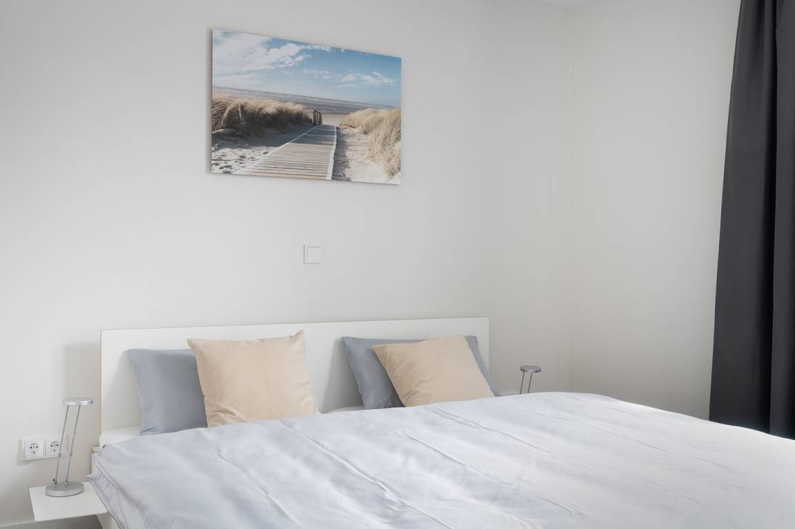 Die 3-Zimmerwohnung des vorderen Apartmenthauses bietet mit einer Fläche von 53 m² Aufenthaltsmöglichkeiten für 2-4 Personen. Eine offene, vollausgestattete Küche schafft hohe Transparenz zum Wohnraum und lädt ein für gemeinsame Zeit. Die Einrichtung der Wohnung fokussiert sich auf ein modernes und gleichzeitig gemütliches Interieur.