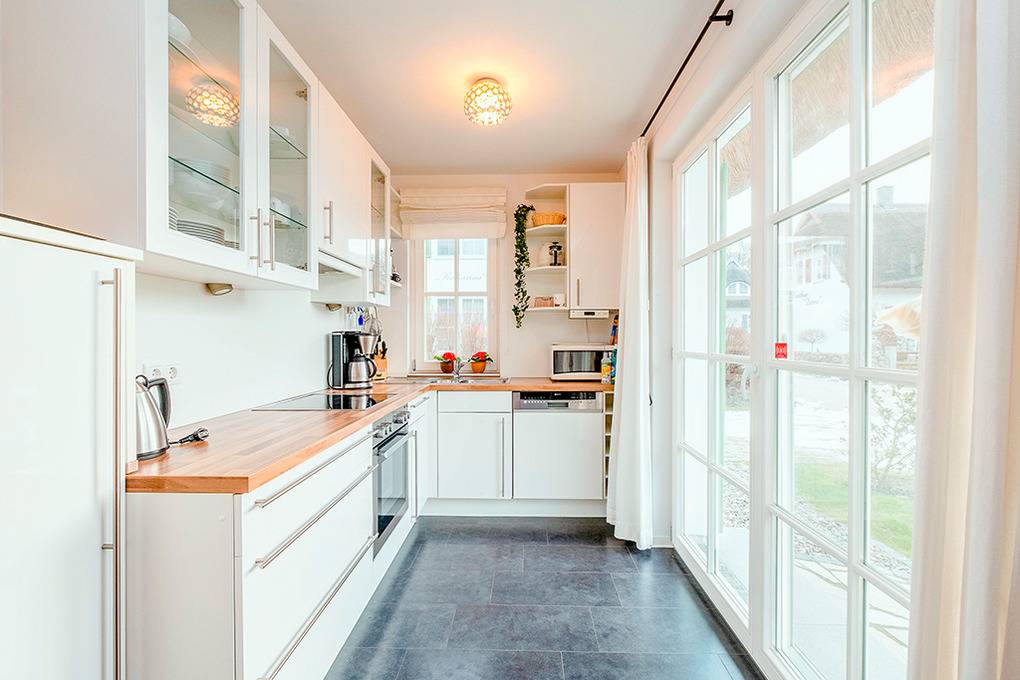 Haus: Schönes Reetdachhaus mit Kaminofen. Moderne Ausstattung, geschmackvolle Möblierung. Internet kostenlos über W-Lan. Zentral-/Fußbodenheizung. Münz-Waschmaschine/-Trockner. Nichtraucherhaus. Große sonnige Terrasse mit Sitz- und Liegemöbeln, Grillkamin. Gartenhaus für Fahrräder. 2 Pkw-Stellplätze am Haus.