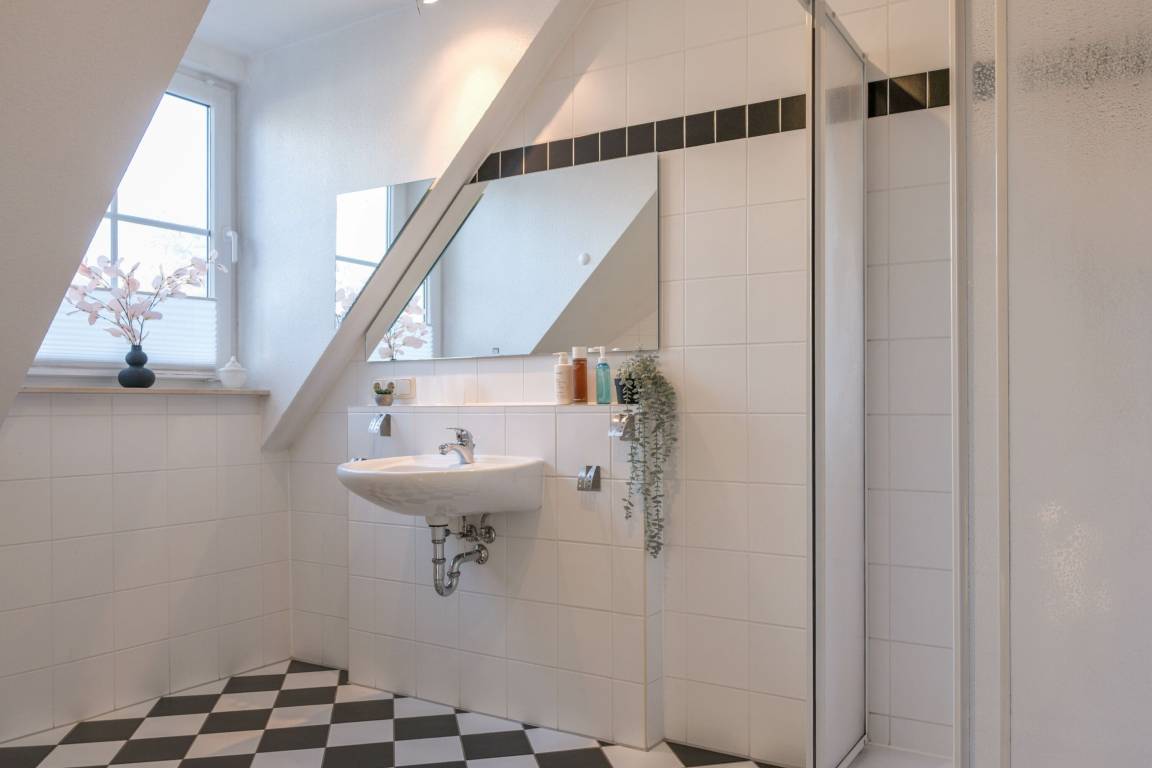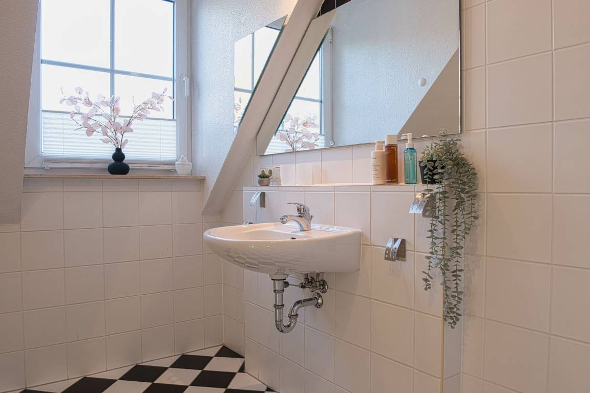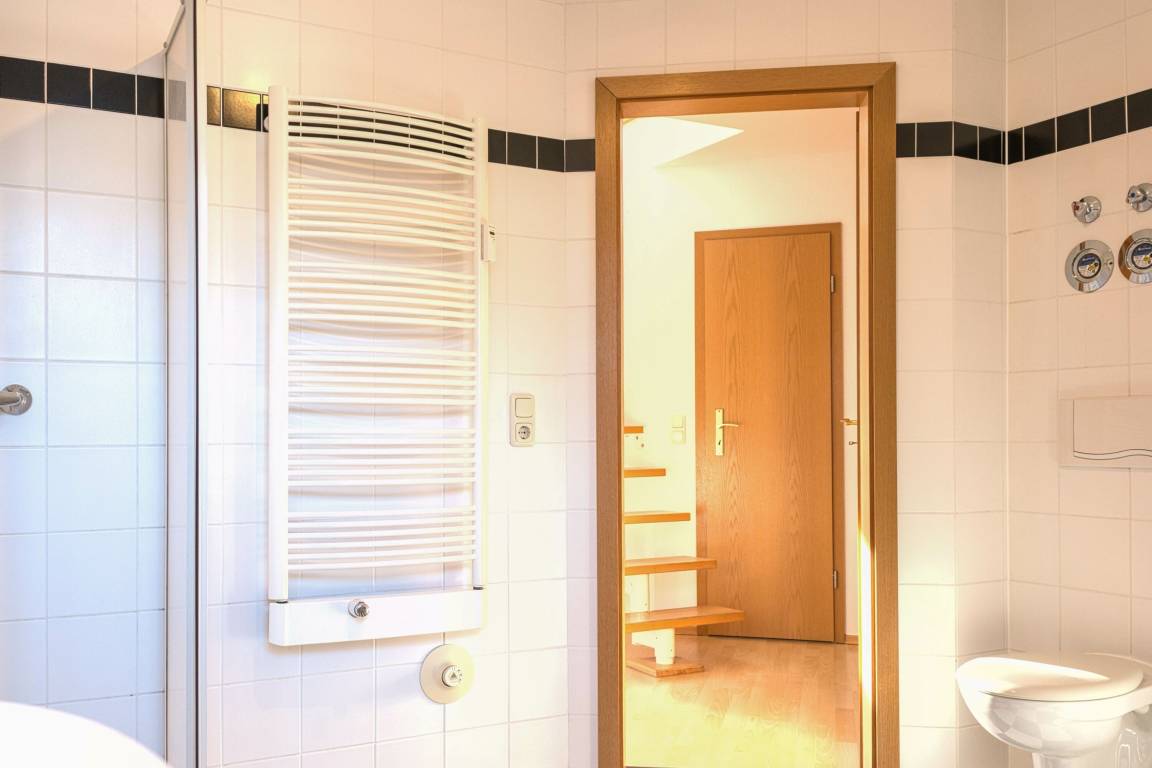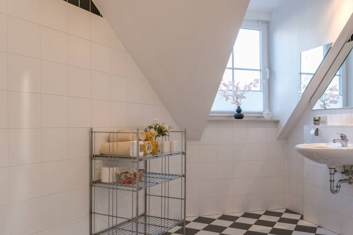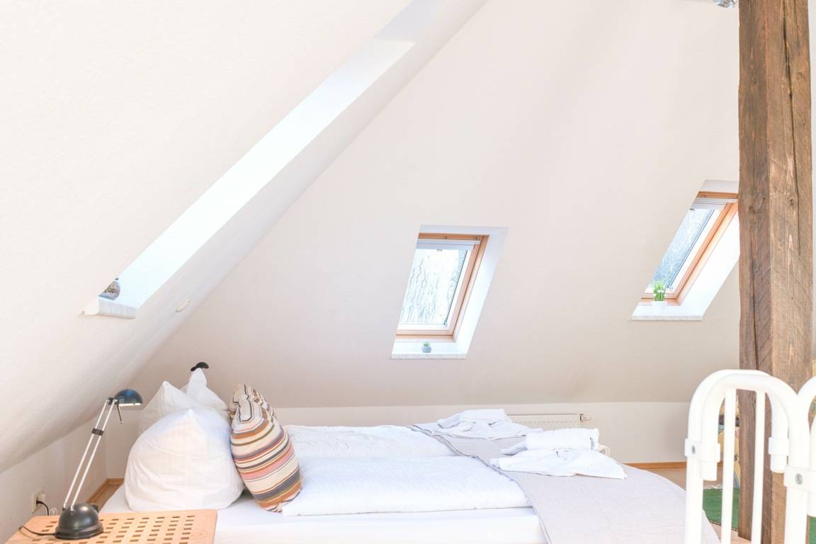 Die Fewo Gabriele zeichnet sich durch ihre helle Ausrichtung nach Süden und die vielen Fenster mit Insektenschutz sowie einen Balkon aus. Die Nutzung des W-LAN/Internets ist kostenfrei. In der unteren Ebene befinden sich eine voll ausgestattete Einbauküche, ein gemütlicher Wohn- und Essbereich, ein Schlafzimmer mit Doppelbett und ein Badezimmer mit Fußbodenheizung und Dusche. Über eine Holztreppe gelangt man in die Galerie, wo sich das zweite Schlafzimmer mit Doppelbett befindet. Der Balkon ist mit Gartenmöbeln ausgestattet. Für Autos steht ein kostenloser PKW-Stellplatz zur Verfügung und auch Fahrräder können vor dem Haus abgestellt werden.