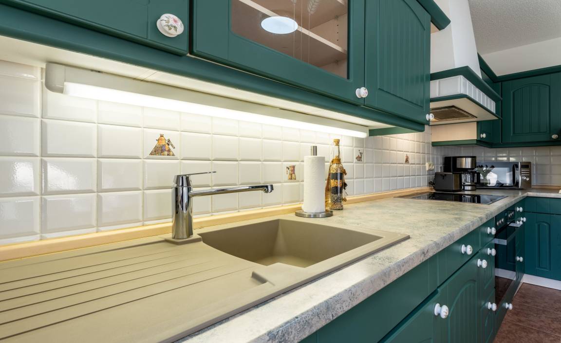 Die Ferienwohnung Feuer im Haus Fünf Elemente bietet auf 58qm Platz für 4 Personen. Die Wohnung hat zwei Schlafzimmer die jeweils mit einem Doppelbett ausgestattet sind. Eines der beiden bietet auf einer Fläche von 2x90x200cm Platz für zwei Personen. Das andere auf einer Fläche von 140x200cm ebenso Platz für zwei Personen. Im Wohnzimmer befindet sich neben einem Sofa ein Smart-TV mit Streaming-Funktion. Außerdem hat die Wohnung eine separate Küche die großzügig ausgestattet ist. Hier befinden sich ein Geschirrspüler, ein Kühlschrank mit Gefriermöglichkeit, ein Backofen mit Ceran-Kochfeld, eine Mikrowelle, ein Wasserkocher, eine Kaffeemaschine, ein Toaster und ein Babyhochstuhl. Die Wohnung verfügt außerdem über ein Badezimmer das, neben der Toilette und dem Waschbecken, sowohl eine Dusche, als auch eine Badewanne besitzt.