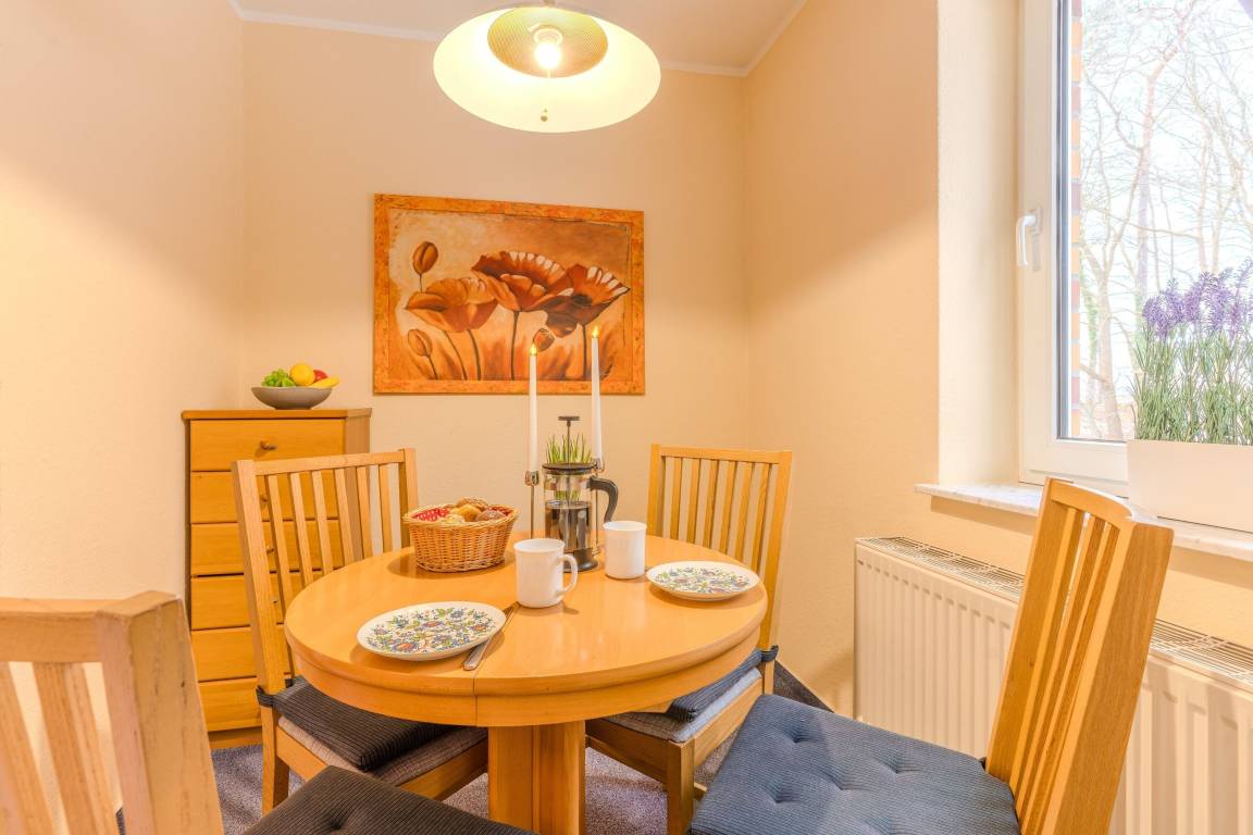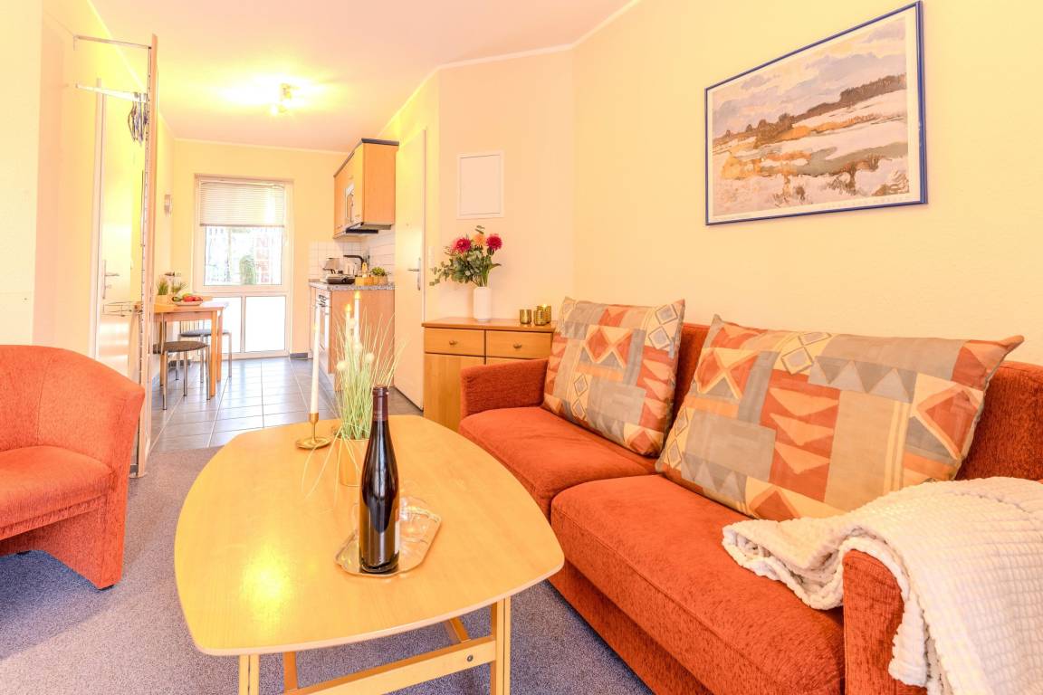 Das Appartement 216 in der beliebten Appartementanlage „Seeblick" bietet eine komfortable und vollständig ausgestattete Ferienwohnung auf Usedom. Die Nichtraucher-Unterkunft liegt im 1. Obergeschoss und eignet sich ideal für 2–3 Personen, die einen erholsamen Urlaub an der Ostsee verbringen möchten.