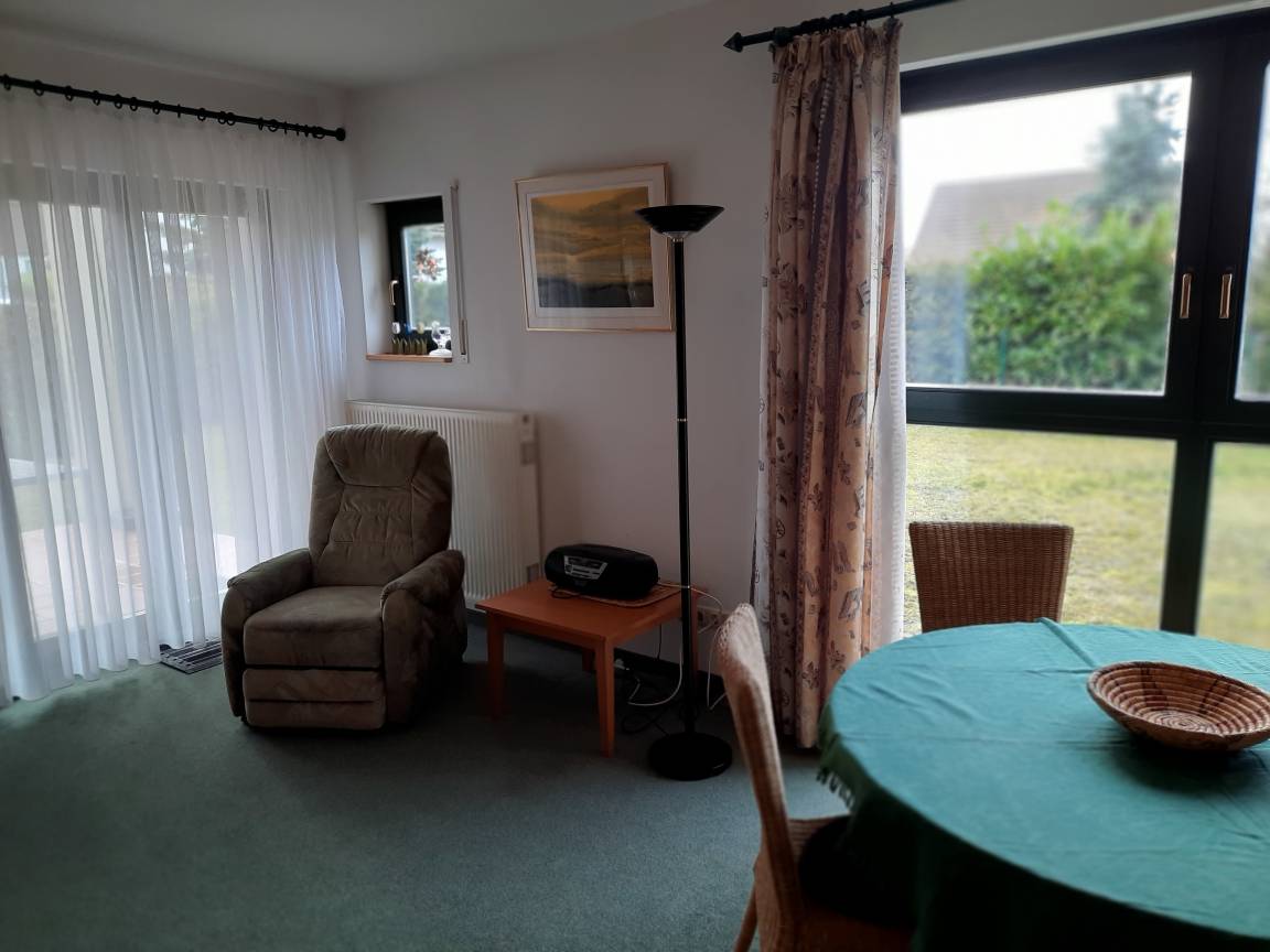 Beim Frühstück schauen Sie durch das bodentiefe Fenster auf die Wiese und beobachten Rotkelchen und Spatzen, die schon auf Ihre Brotkrumen warten.