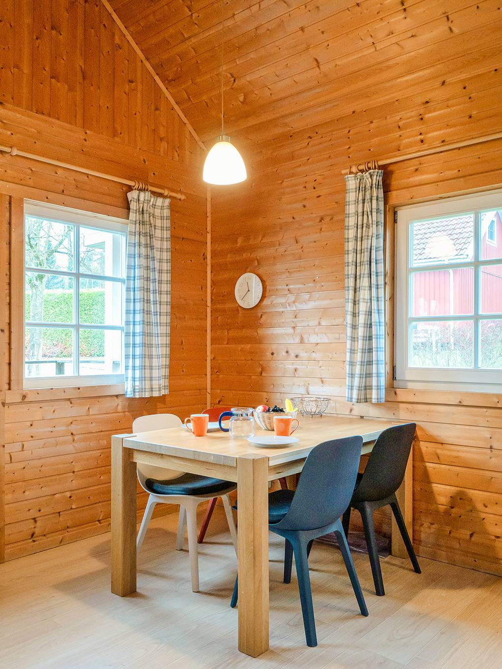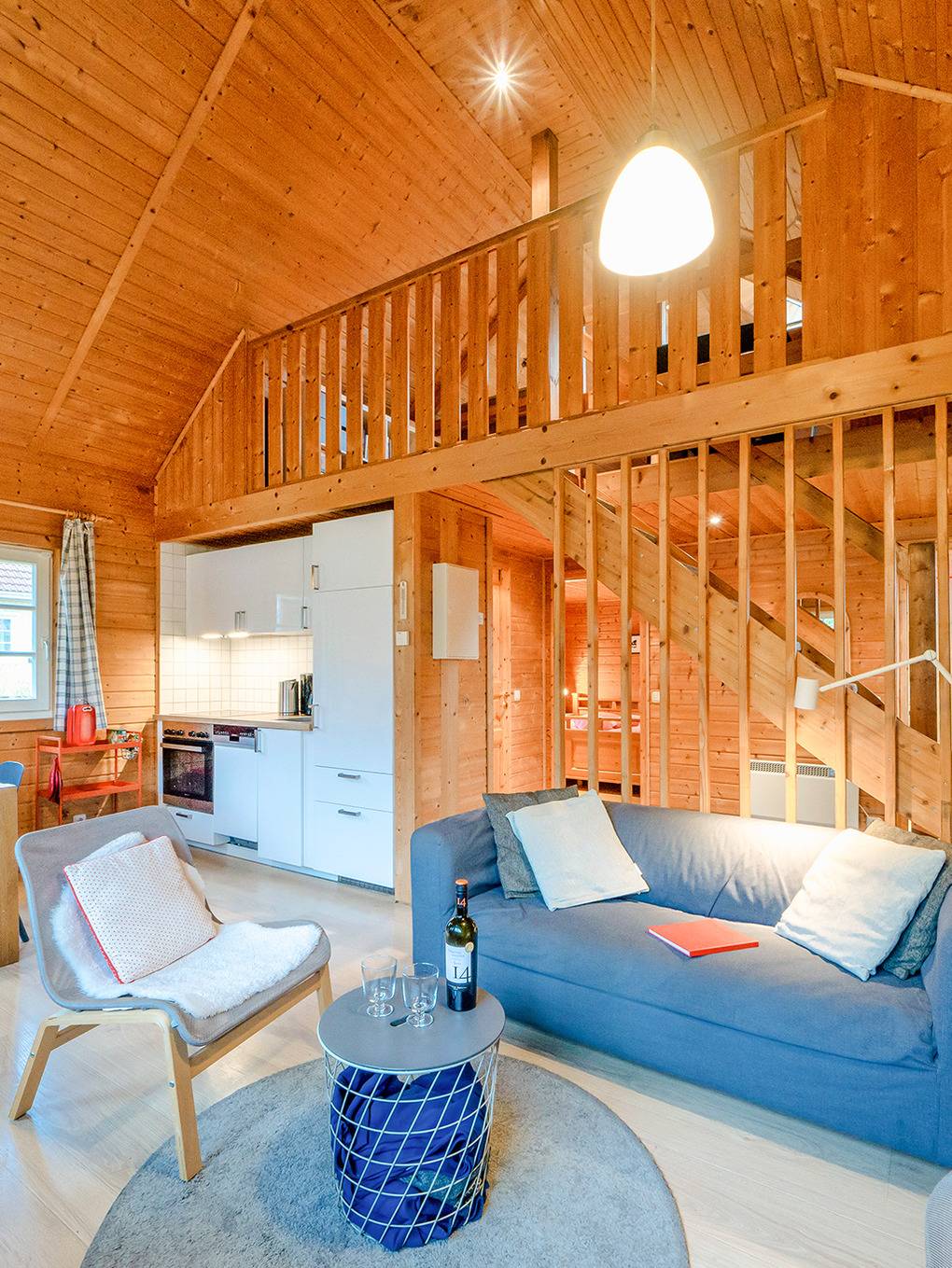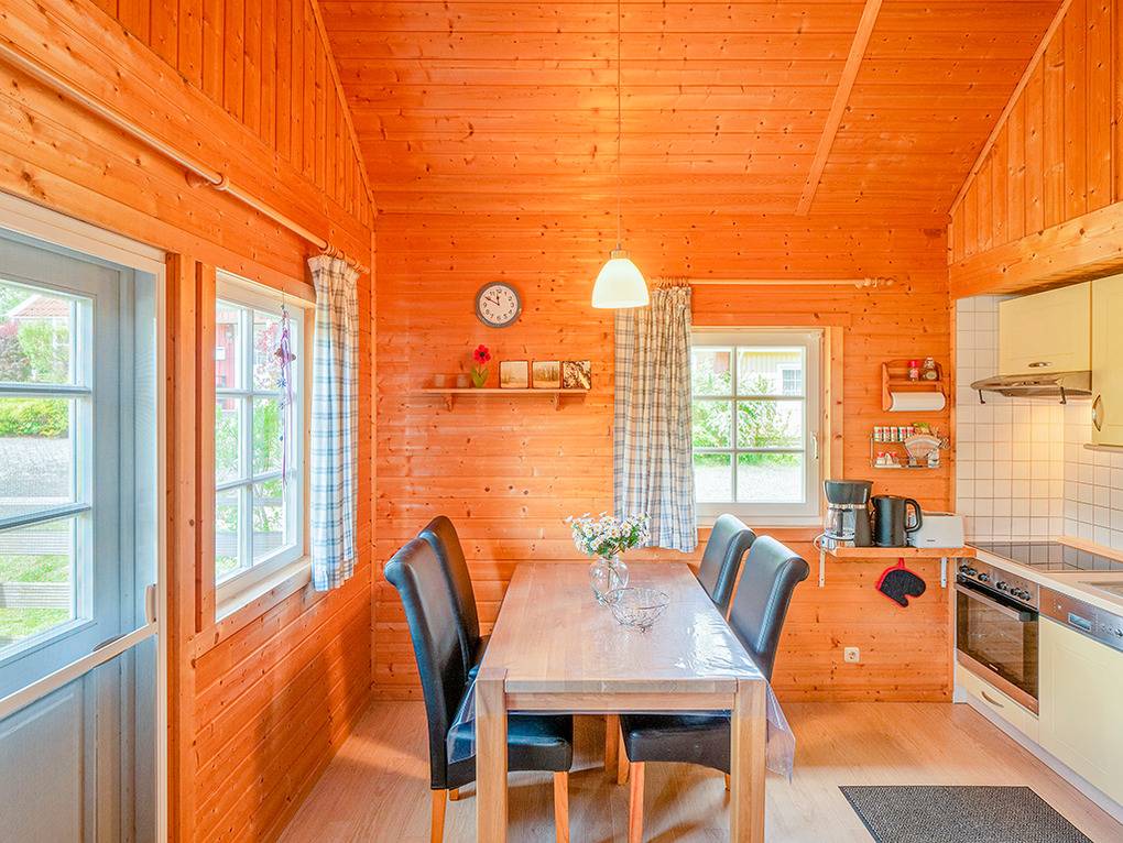 Haus: Sehr schöne familiäre Ferienhausanlage mit 23 Häusern im skandinavischen Stil, teilweise mit Seeblick. Komfortables Ferienhaus mit Sauna und Kamin. Gemütliches Ambiente durch Holzvertäfelungen im ganzen Haus. Komfortable Einrichtung mit Kabel-TV, Radio, moderner Einbauküche . E-Heizung, Warmwasser über Durchlauferhitzer. Schöne Terrasse mit Sitzmöbeln, eingeschränktem Seeblick.