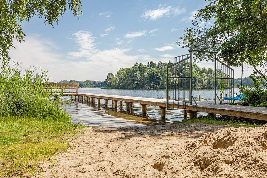 Ort: Krakow am See. Einzigartige, idyllische Lage direkt am Krakower See (50 m), auf naturbelassenem Grundstück mit altem Baumbestand. Zur Anlage gehörend: Badestelle mit Bootsteg (50 m), Kinderspielplatz. Ortsmitte mit Restaurants, Geschäften 1,9 km.