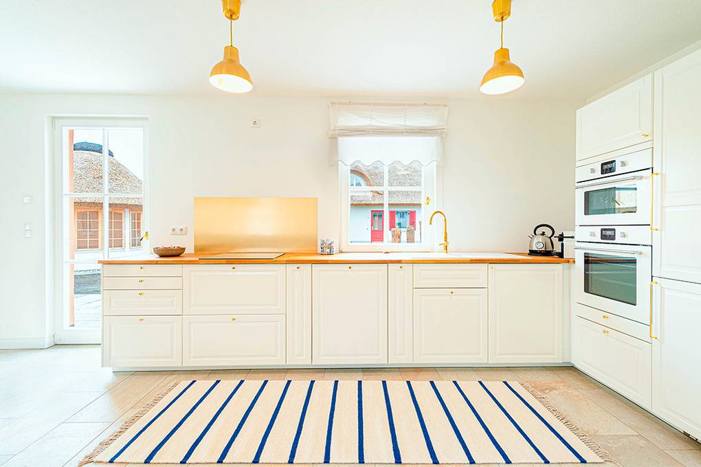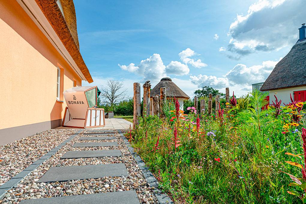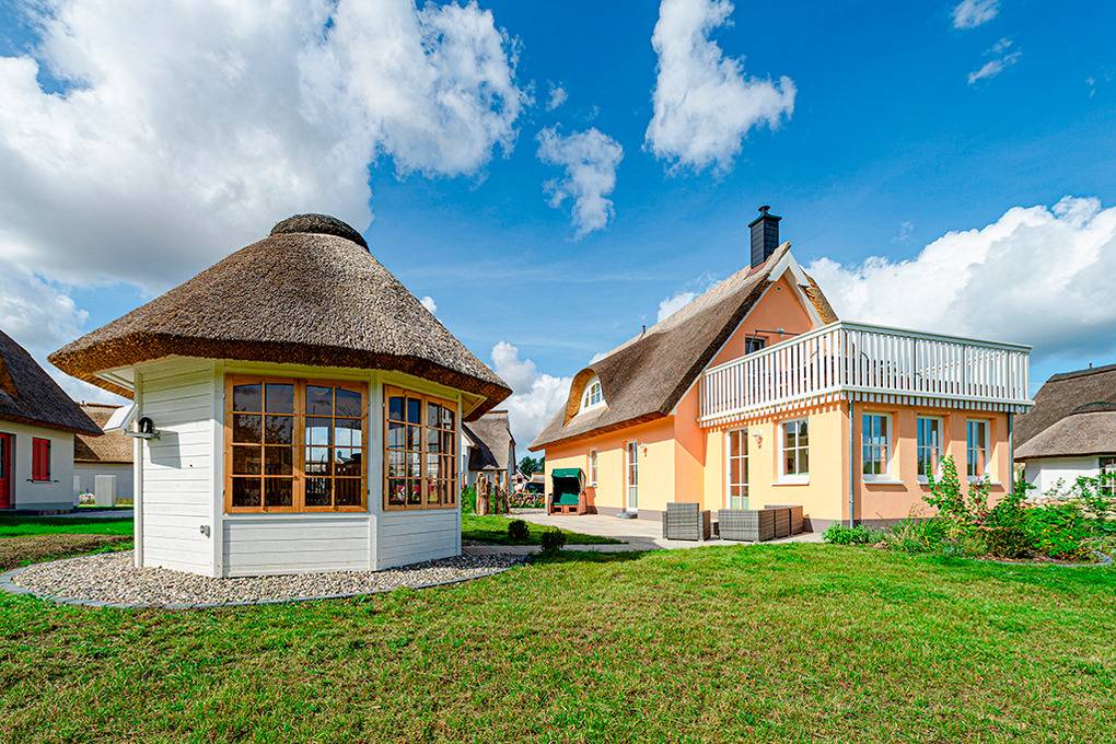Haus: Exklusives Reetdachhaus mit Sauna und Kamin, 2019 neu erbaut. Schöner Wasserblick von der Dachterrasse. Nichtraucherhaus. Gehobene Ausstattung mit moderner, geschmackvoller Einrichtung. 3 Schlafzimmer, 2 Bäder. Kostenloser Internetzugang (W-Lan). Weitläufige Terrasse mit Sitzmöbeln. Schöner Garten mit Rasenfläche und Pavillon. 2 Pkw-Stellplätze am Haus.