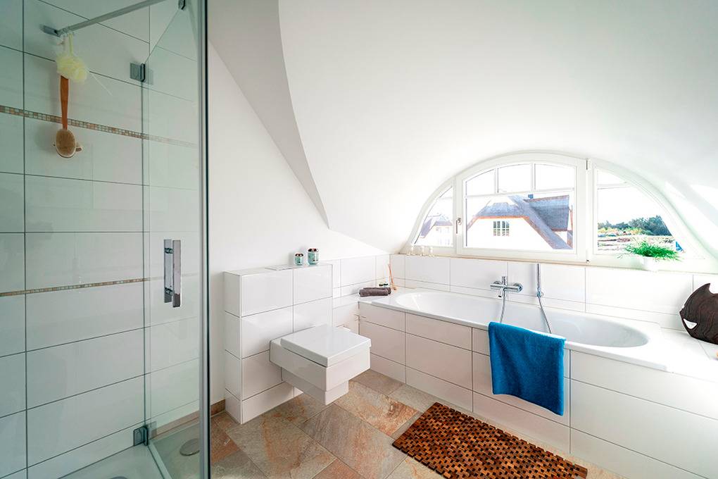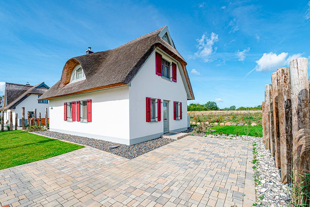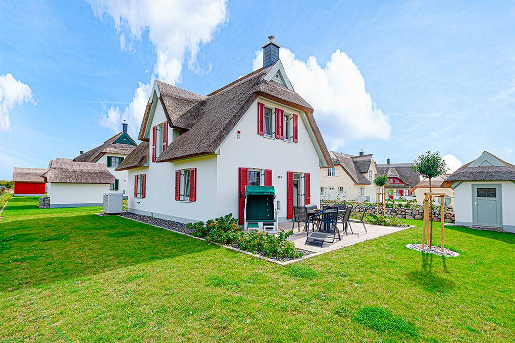 Haus: Exklusives Reetdachhaus mit Sauna und Kaminofen, 2017 neu erbaut. Schöner Wasserblick aus der zweiten Häuserreihe. Nichtraucherhaus. Gehobene Ausstattung mit moderner, geschmackvoller Einrichtung. 2 Schlafzimmer, 2 Bäder. Kostenloser Internetzugang (W-Lan). Fußbodenheizung. Waschmaschine. Terrasse mit Sitzmöbeln, Strandkorb, Grill. 2 Pkw-Stellplätze am Haus.