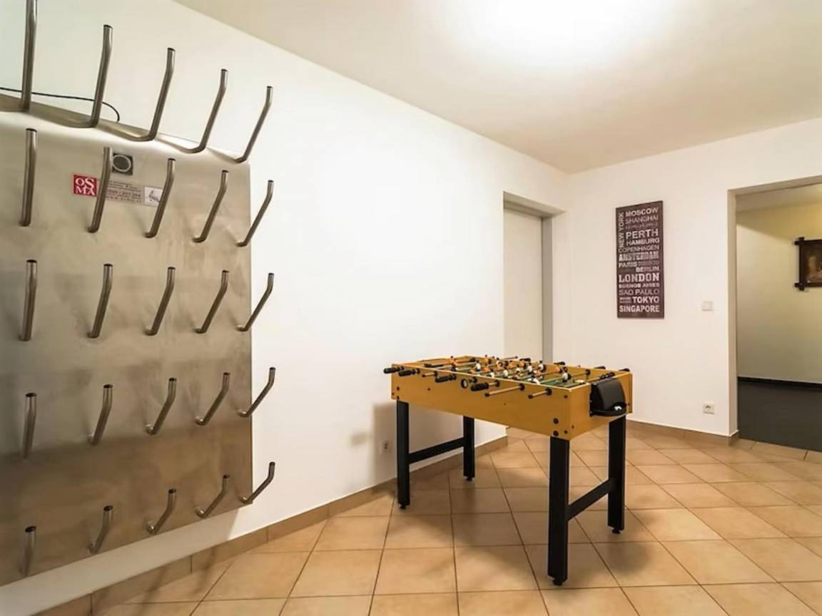 Souterrain: Toilette, Spielzimmer mit Tischtennisplatte, Tischfußball , Ruheraum mit TV, Stereoanlage, Bar, Dusche, Infrarotsauna, Sauna