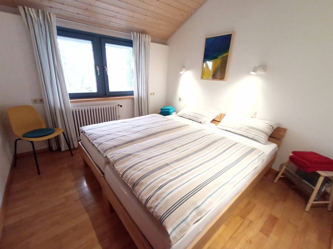 Die Ferienwohnung 2 im HAUS AM SEEPARK ist zur Abendsonne ausgerichtet und verfügt über zwei separate Schlafzimmer - eines ausgestattet mit Doppelbett und im zweiten mit zwei Einzelbetten, die zum Doppelbett gestellt werden können. Sie können uns nach Buchung angeben, wie wir die Betten für Ihren Aufenthalt stellen sollen.