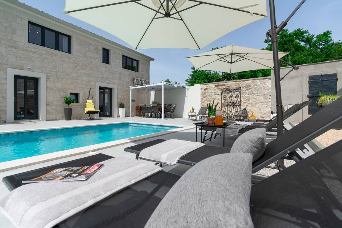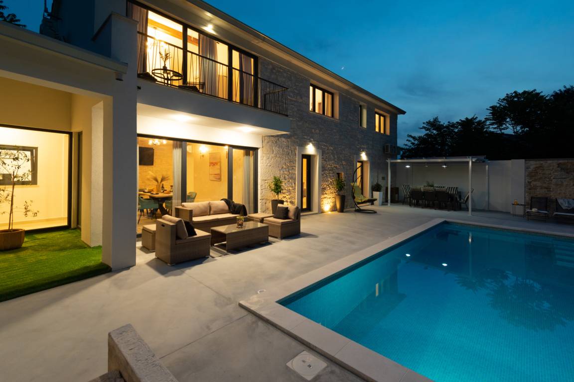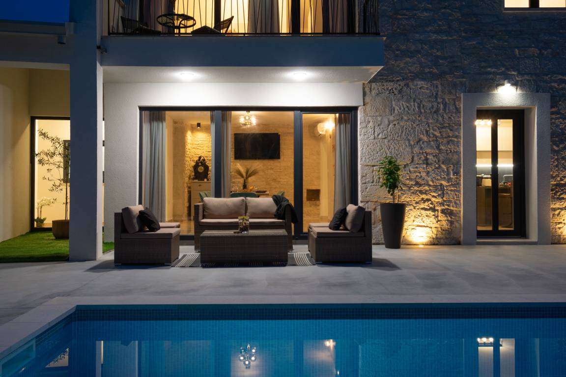 Designer-Villa in geschlossener Bauweise, die die perfekte Mischung aus modernem Komfort und rustikalem Charme bietet, mit 180 m² Wohnfläche, 30 m² Pool, Büro, 70"-Fernseher, 4 Schlafzimmern, 4 Bädern, Netflix. Ideal für Familien oder Gruppen auf der Suche nach einem ruhigen und entspannenden Urlaub