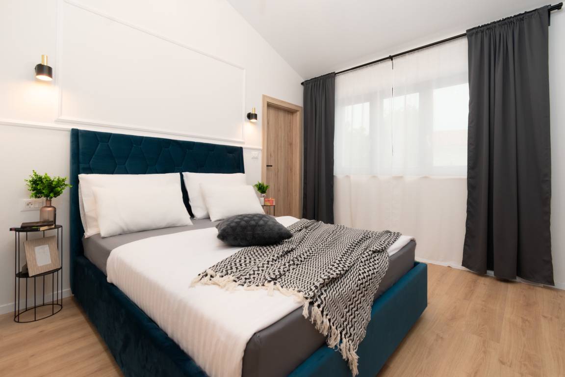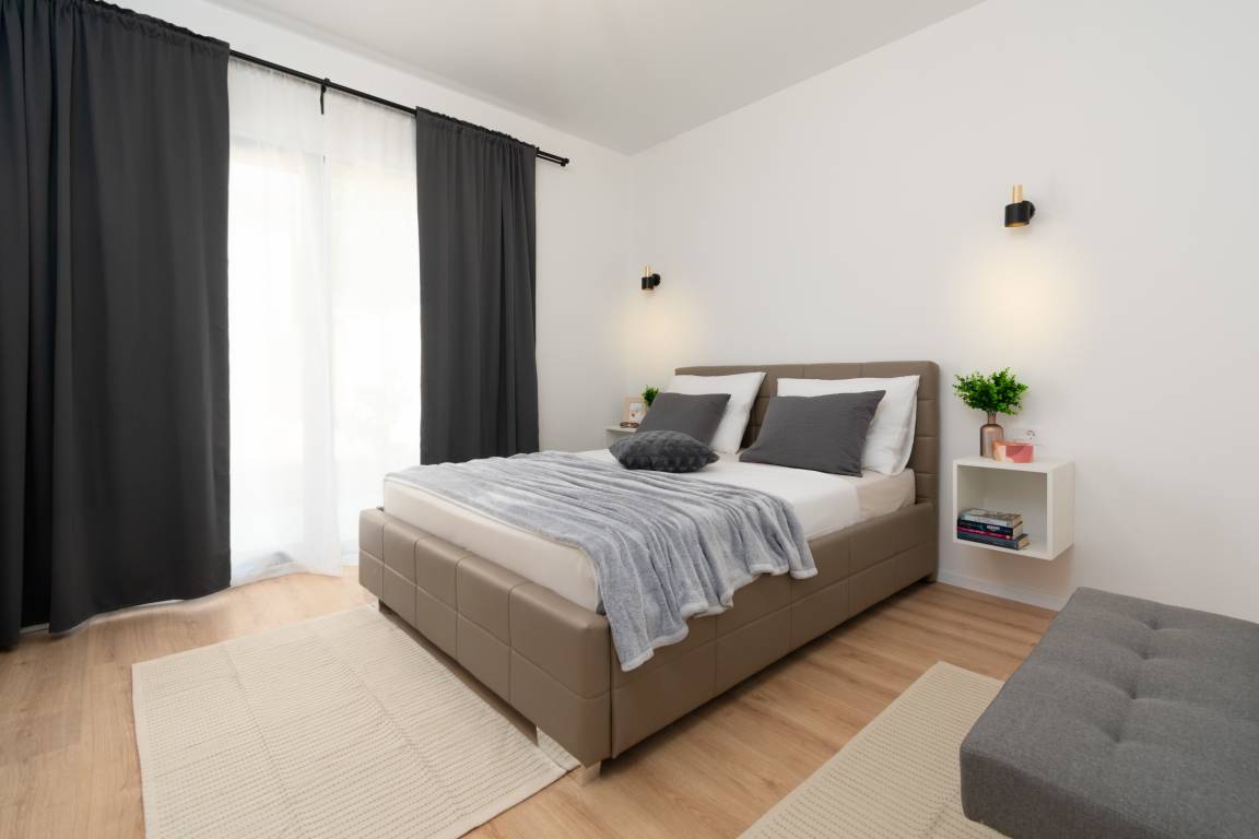 Das zweite Schlafzimmer liegt in der Mitte und hat ein großes Fenster, Klimaanlage, Bad und ein 160 cm breites Bett.
