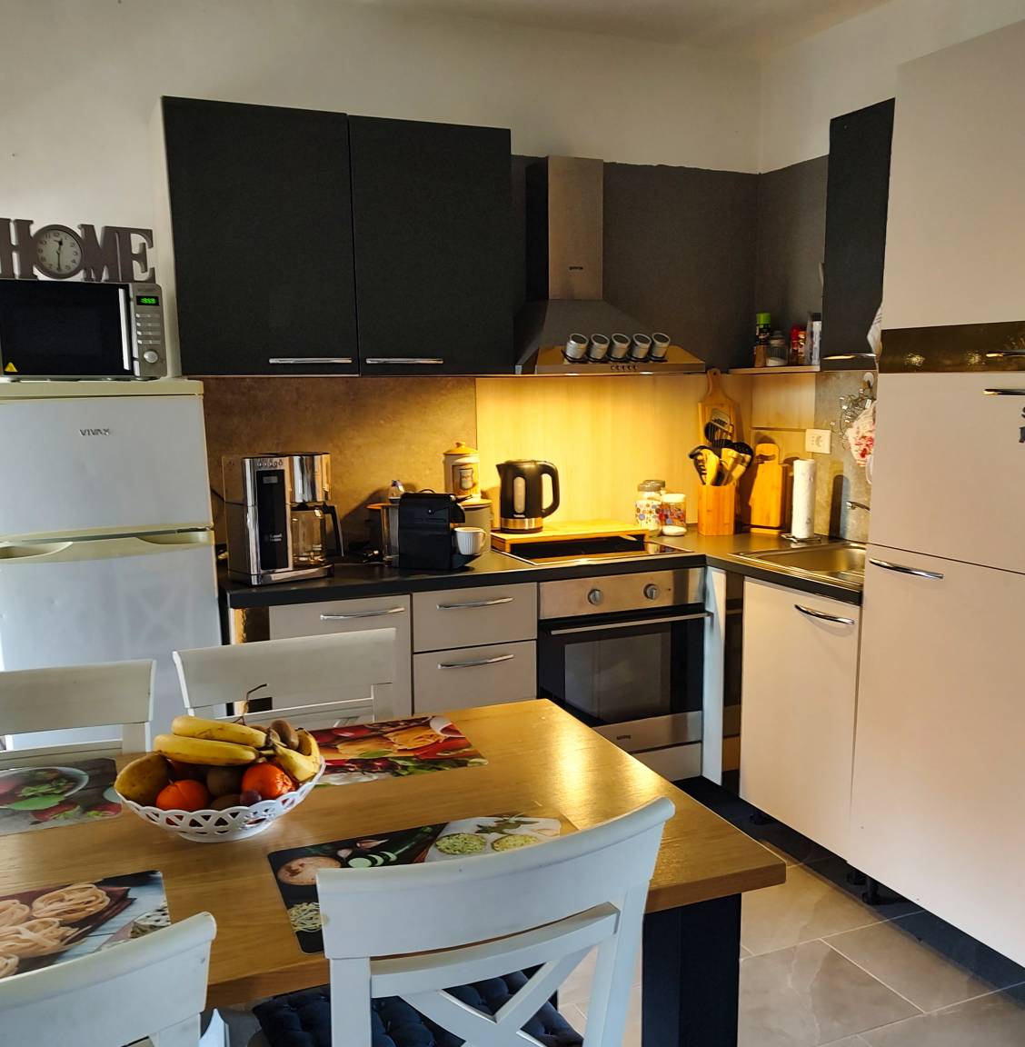 • kitchen with oven, stove, microwave, 2 refrigerators, large freezer, deep fryer, 2 coffee machines (filter, capsule)