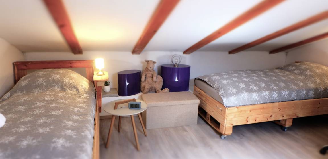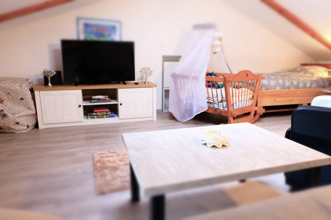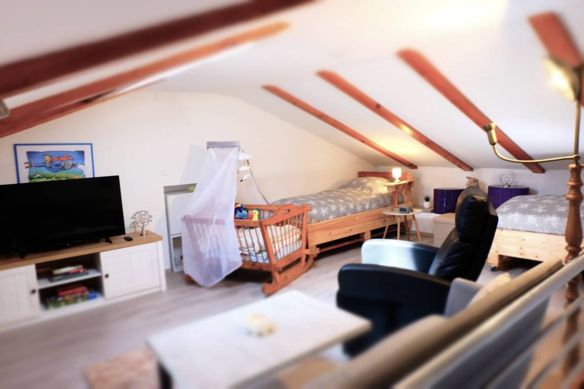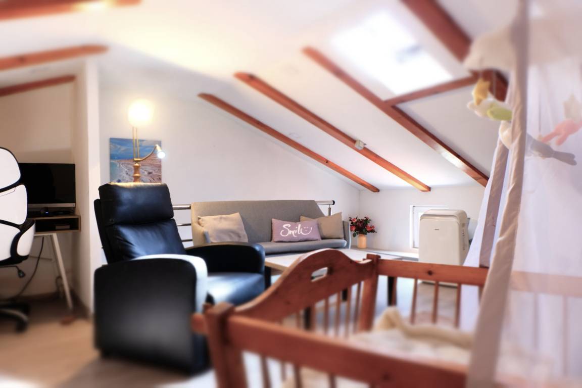 Our vacation house Maja offers you on three floors a kitchen-living room, bathroom, 2 bedrooms and in the attic a large living area with another 2 full sleeping possibilities.
