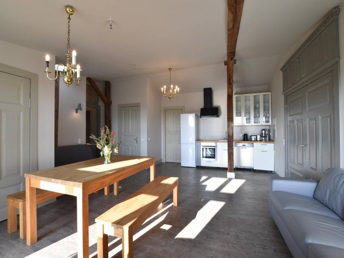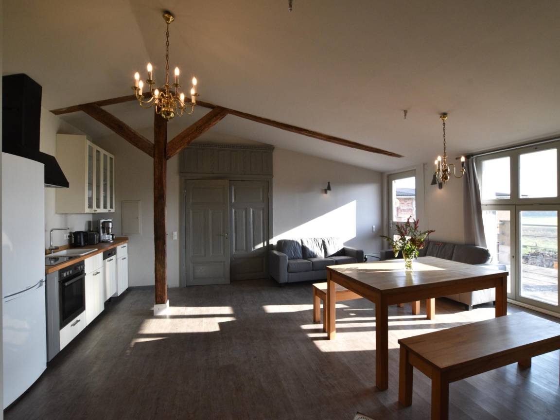 Hausbeschreibung : Diese Kombination aus 2 Ferienwohnungen befindet sich auf einer Gutsanlage mit Dachterrasse und herrlichem Blick über Wald und Wiesen. Es gibt eine Verbindungstür zwischen den Unterkünften. Die 2 Wohnzimmer verfügen über Schrankbetten für zusätzliche Gäste. Ponys im Garten und ein großer öffentlicher Spielplatz in der Nähe des Anwesens sorgen für einen perfekten Familienurlaub. Ein großer Gruppenraum für Veranstaltungen oder geselliges Beisammensein kann auf Anfrage zur Verfügung gestellt werden
