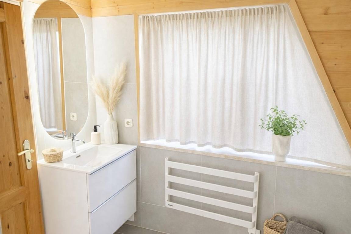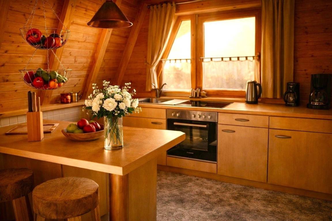 Das Ferienhaus ist ein Holzhaus, mit einem Schrägdach Auf zwei Etagen, mit Sonnenterrasse und Balkon. Das Besondere an diesem Haus ist die Bauform und die wunderbare Ausstattung, die keine Wünsche offen lässt. Das i-Tüpfelchen ist die hauseigene Sauna, die zum entspannen einlädt.