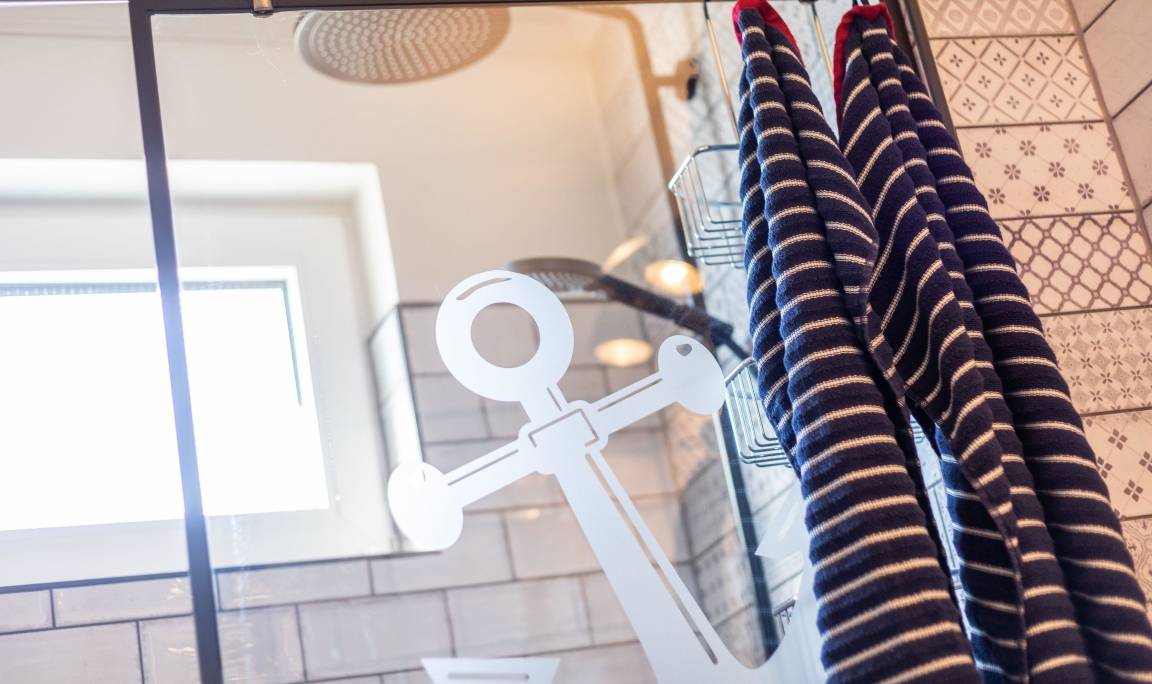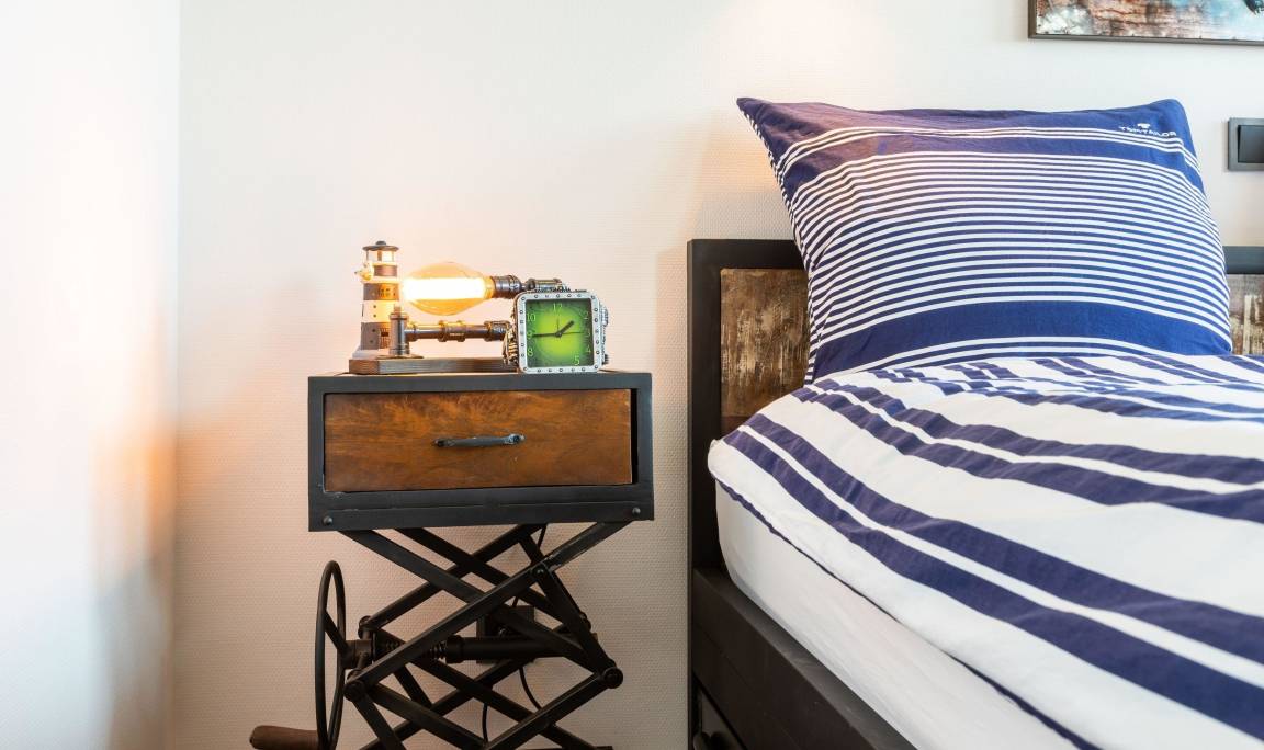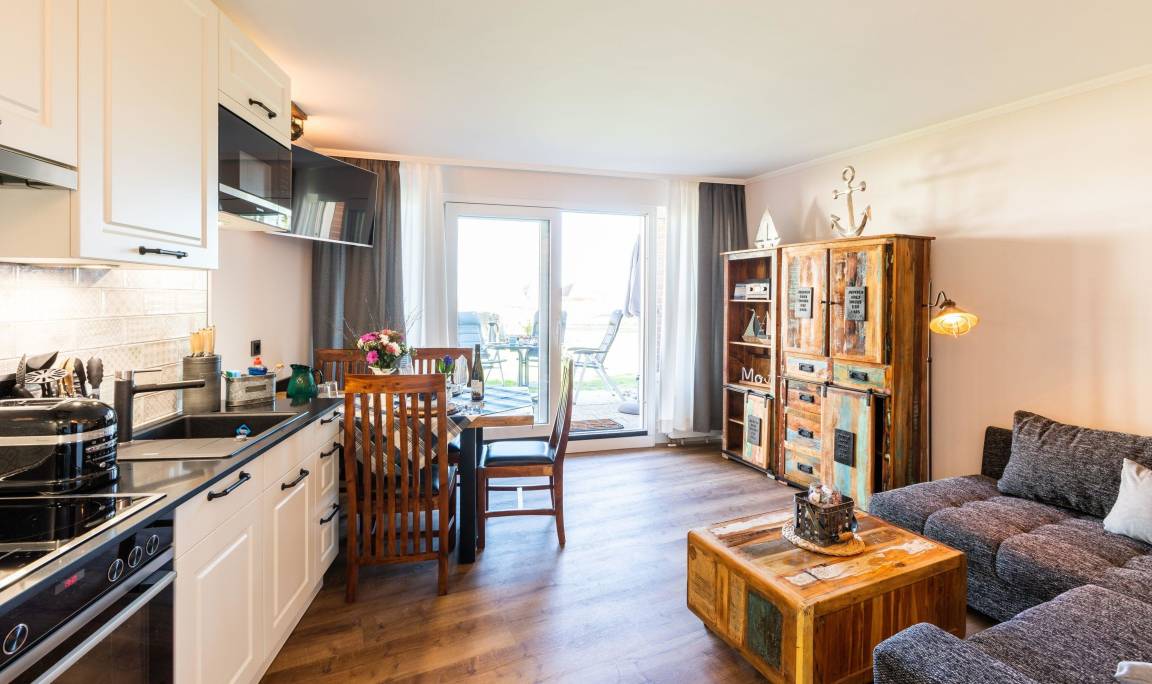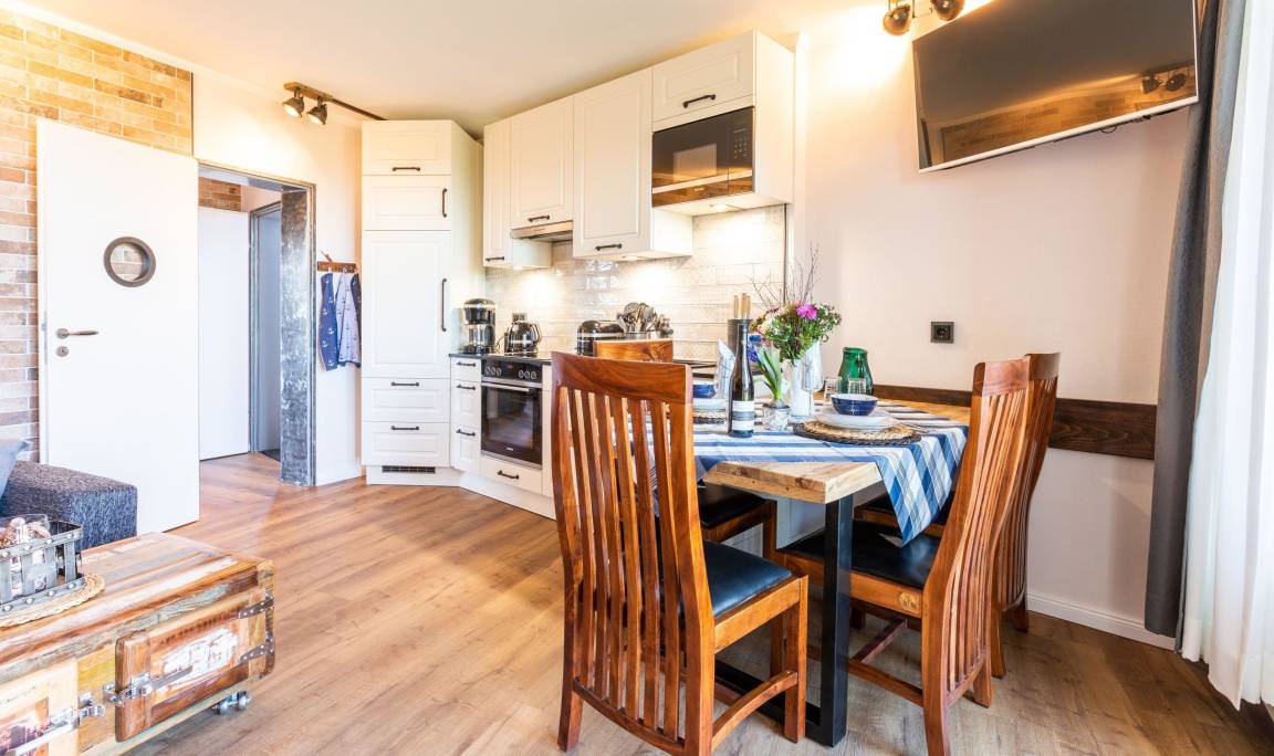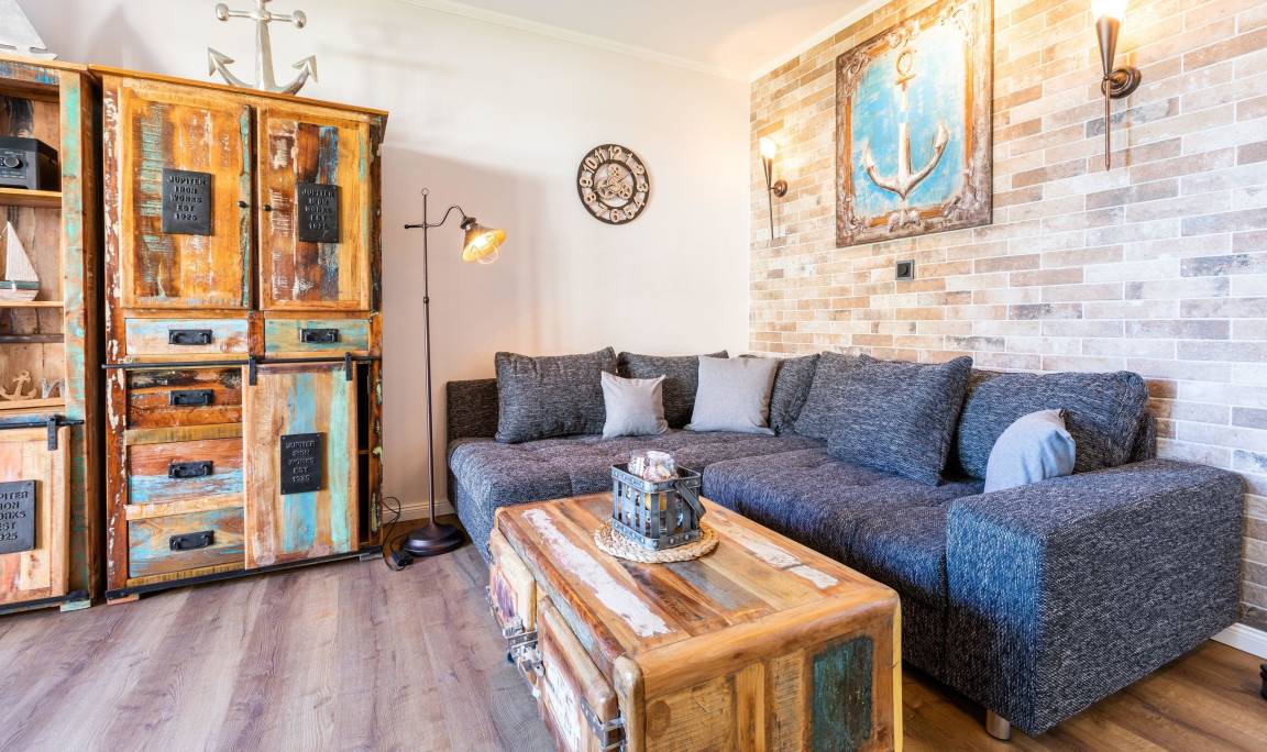 Unsere komplett kernsanierte und neu eingerichtete Ferienwohnung mit Terrasse wurde ist hell und modern im maritimer Shabby-Chic meets Industrial Style eingerichtet.