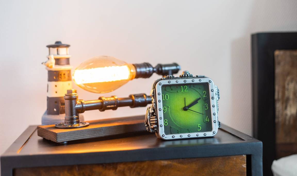 - 2 Nachttische mit Nachttischlampen und Wecker