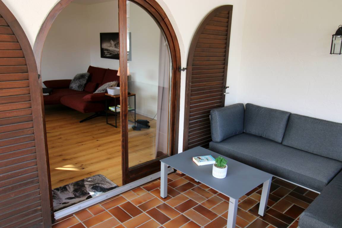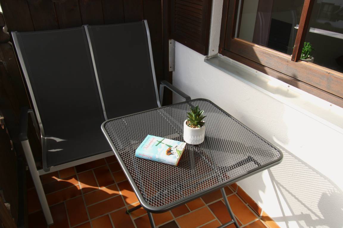 Vom Eingang kommen Sie in den Flur mit Garderobe. Hier zweigt das Badezimmer mit Badewanne und WC ab. Gegenüber befindet sich die separate, komplett eingerichtete Küche mit Spülmaschine und Cerankochfeld und Backofen. Ein gemütlicher Essplatz befindet sich ebenfalls in der Küche. Im Wohnbereich fällt gleich das große Panoramafenster ins Auge. Hier befindet sich auch ein Esstisch direkt am Fenster. Zudem gibt es einen gemütlichen Lesesessel, sowie ein Sofa zum entspannen. Die Loggia mit Loungemöbeln und der angrenzende Balkon sind über eine Türe erreichbar. Dieser Bereich kann durchaus als besonderes Highlight bezeichnet werden. Das Schlafzimmer ist mit einem neuen Boxspringbett (180x200cm), sowie einem großen Kleiderschrank mit Schiebetüren ausgestattet.