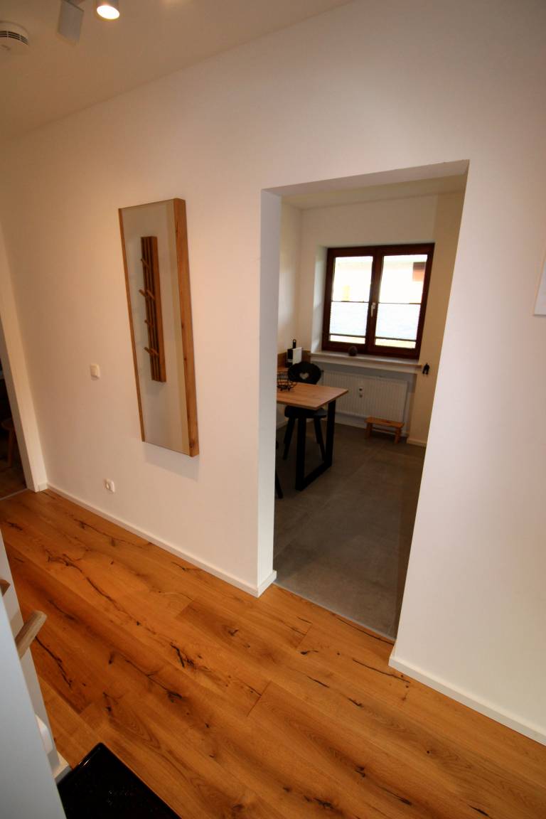 Die Ferienwohnung Isarkindl ist neu renoviert und im modernen Alpinstil hochwertig möbliert. Die ungewöhnlich große Loggia mit Balkon verspricht gemütliche Stunden und besticht durch einen herrlichen Weitblick auf das Karwendel- und Wettersteingebirge. Wanderwege, Loipen und Fahrradwege beginnen ganz nahe am Haus.