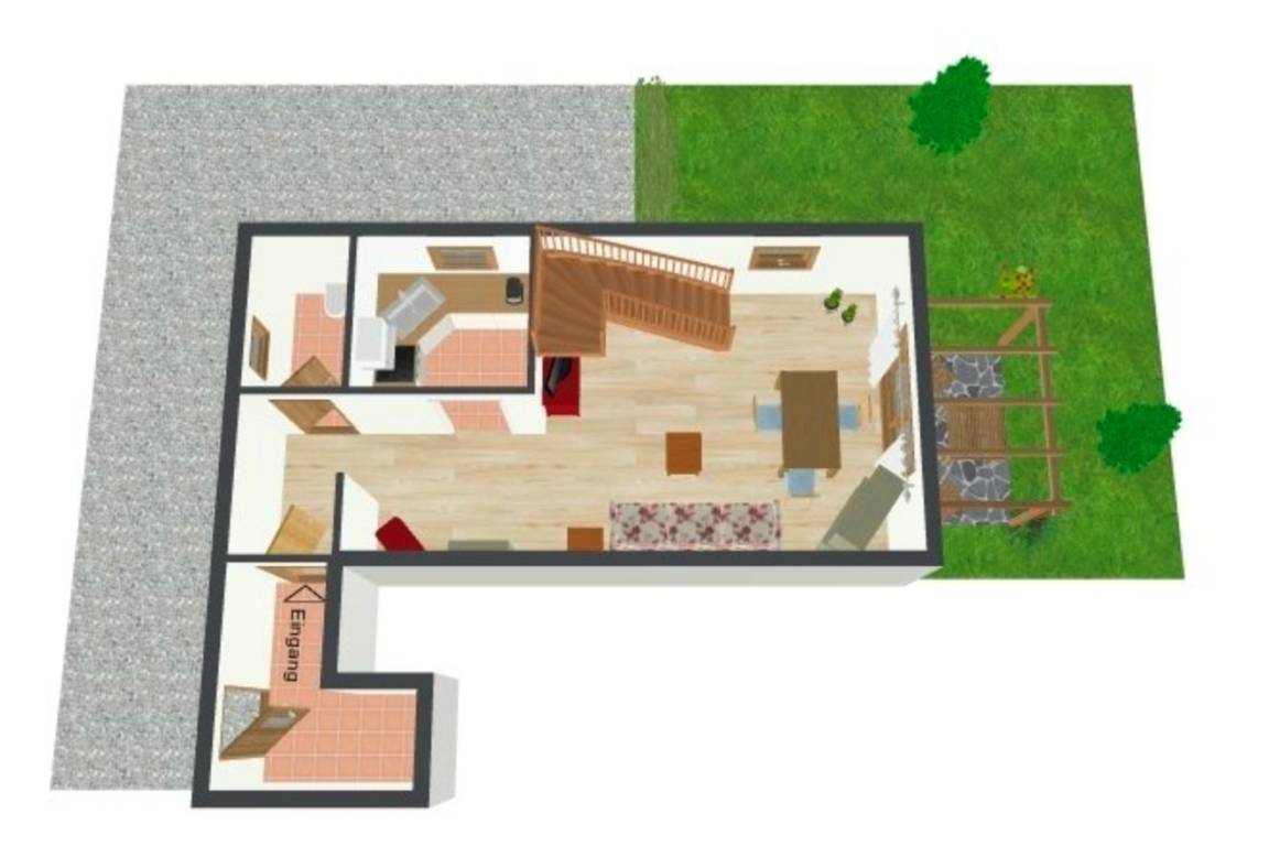 Die Ferienwohnung "Seydel" befindet sich in idylische Lage mit Bergblick. Vom Eingangsbereich mit Gäste WC kommen Sie in das offene Wohnzimmer mit Zugang über die Terasse in den großen Garten. Hier kann eine Grillhütte genutzt werden. Die separate Küche mit Spülmaschine, Cerankochfeld und Mikrowelle ist ebenfalls im Erdgeschoss gelegen. Über die Holztreppe gelangen Sie in das Obergeschoss mit dem Schlafzimmer (Bettenmaß 180 x 200cm).cm. Der komplette Wohnbereich ist gefliest, das Schlafzimmer mit Parkettboden belegt. Ein PKW-Stellplatz sowie ein Fahrradabstellraum befinden sich am Haus. Die Sauna im Keller kann gerne mitgenutzt werden.