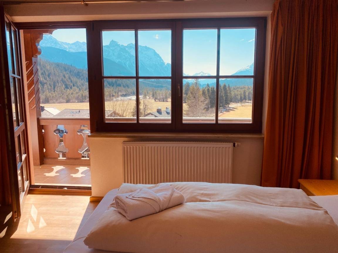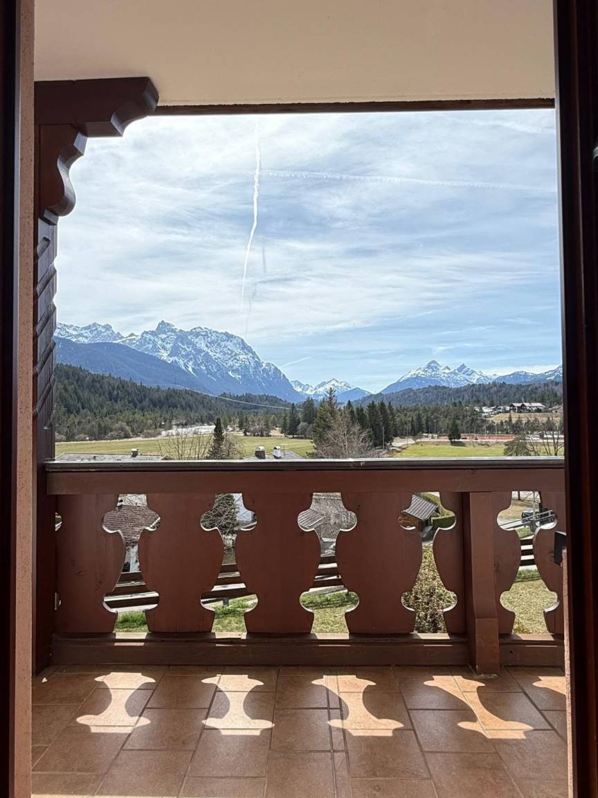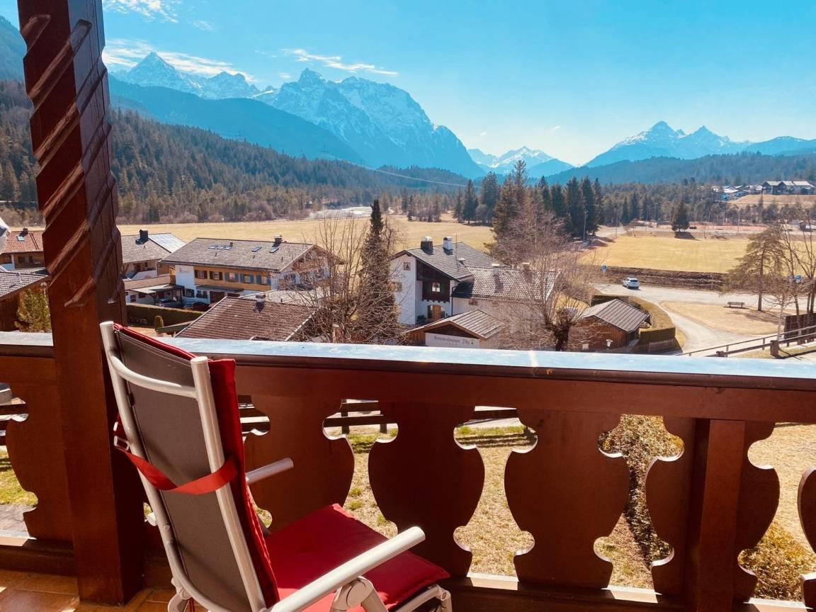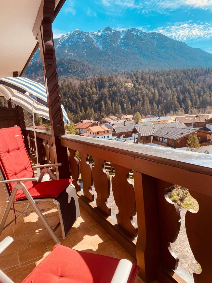 "Hier bekommst du den Bergblick, den andere nur als virtuellen Hintergrund haben. Balkon, Sonne, Ruhe - und das alles in echt. Warnung: Rückkehr in den Alltag erschwert!"