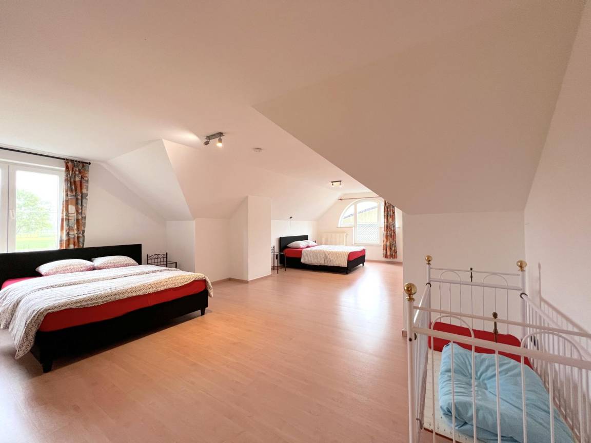 In der 1. Etage: Schlafzimmer mit Doppelbett(160 x 200 cm), 1x Kinderbett (ohne Bettwäsche) , Schlafzimmer mit Doppelbett(160 x 200 cm), Doppelbett(160 x 200 cm), 1x Kinderbett (ohne Bettwäsche) , Schlafzimmer mit Doppelbett(160 x 200 cm), Doppelbett(160 x 200 cm), 1x Kinderbett (ohne Bettwäsche) , Badezimmer mit Badewanne, Waschbecken, Waschbecken, Toilette
