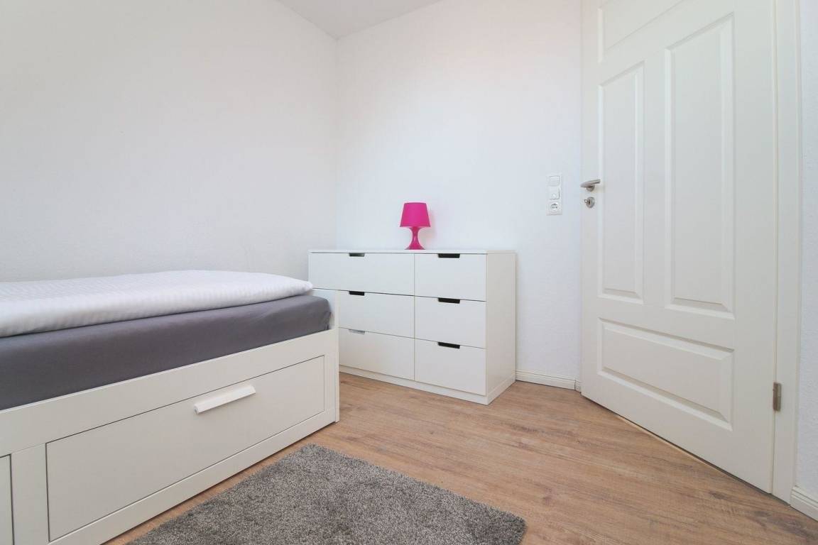 Es sind 2 Schlafräume vorhanden; 1x mit Doppelbett und zweitem Flachbild-TV und 1x mit Einzelbett. Beide Schlafräume haben ausreichend Stauraum für Kleidung u.a.