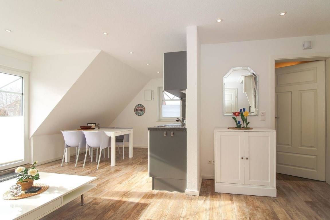 Ein offen gestalteter Wohn-/Essbereich mit komplett ausgestatteter Küche führt auf einen schönen Balkon mit Gartenmöbeln und Sonnenschirm. Ein Flachbild-TV und eine Musikanlage (DVD-BlueRay-Player, Bluetooth-Soundbar) stehen Ihnen zur Unterhaltung zur Verfügung.