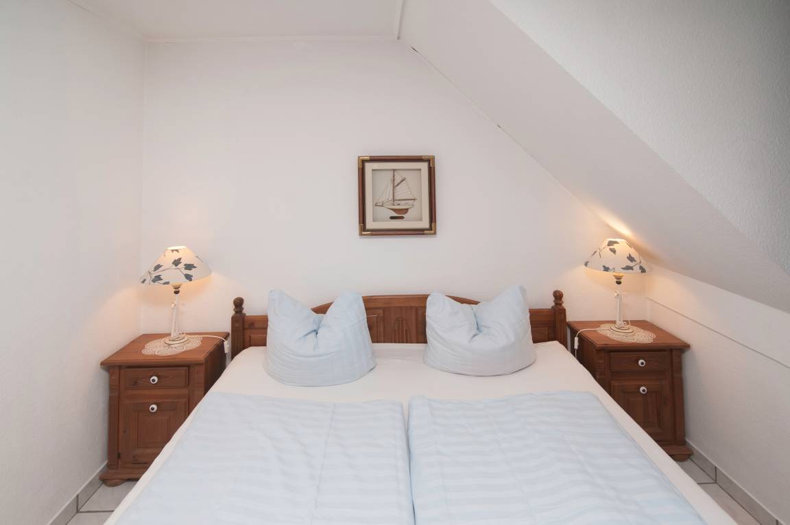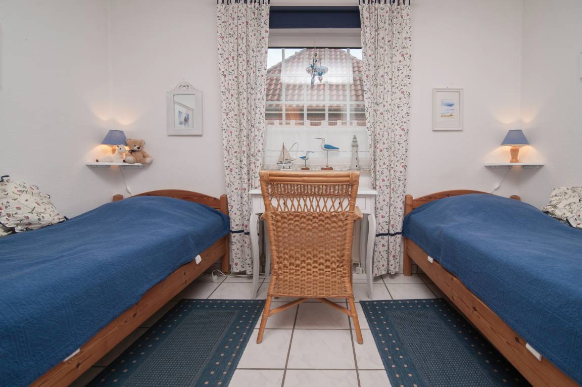 Die Wohnung verfügt über zwei Schlafzimmer: ein Schlafzimmer mit einem Doppelbett (2 x 90 x 200 cm) und Verdunkelungsvorhang sowie ein zweites Schlafzimmer mit zwei Einzelbetten (90 x 200 cm), einem kleinen Schreibtisch und einem Verdunkelungsrollo. Beide Betten haben verstellbare Lattenroste und beide Schlafzimmer sind mit Insektenschutzgittern ausgestattet.
