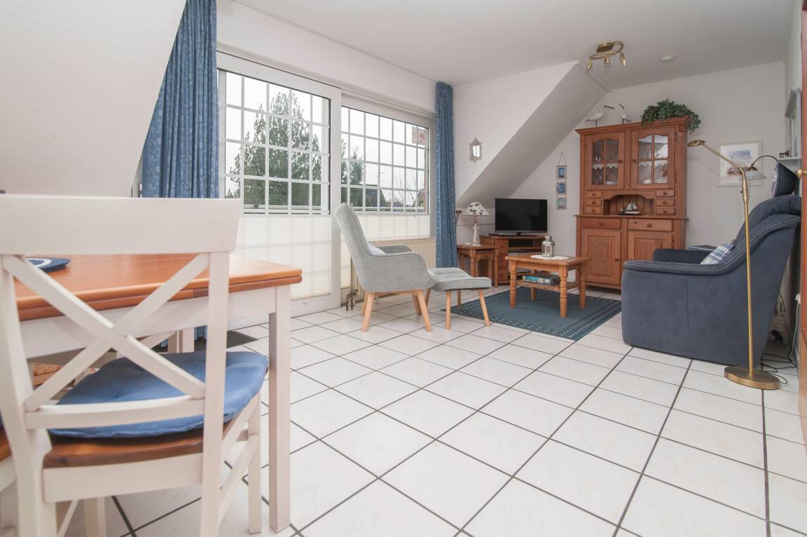 Die Obergeschoßwohnung hat eine Größe von 50 qm und verfügt über ein gemütliches friesisches Ambiente. Sie befindet sich in einer ruhigen Wohngegend in unmittelbarer Nähe zum Deich. Trotz der ruhigen Lage sind der Ortskern mit seinen zahlreichen Restaurants, Cafés und dem berühmten Greetsieler Hafen nur wenige Gehminuten entfernt.