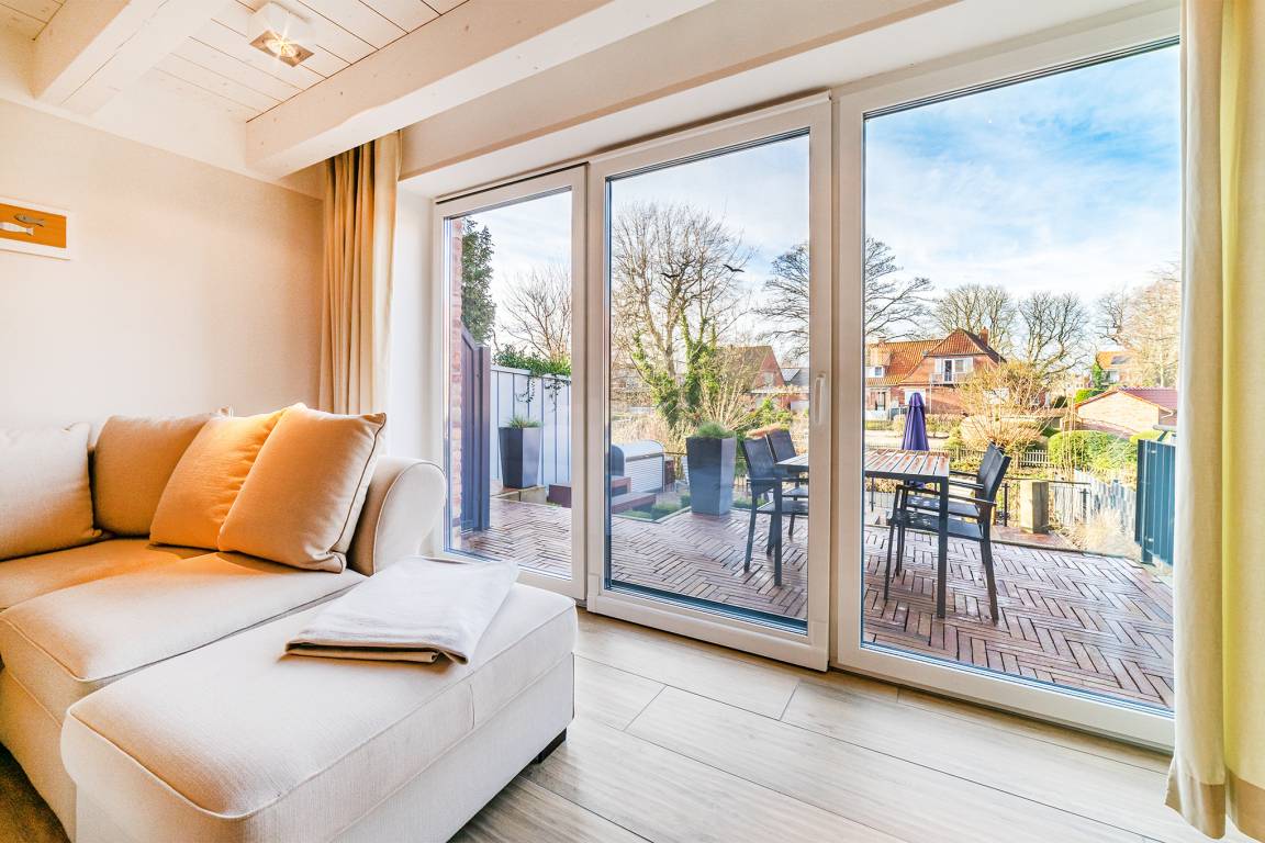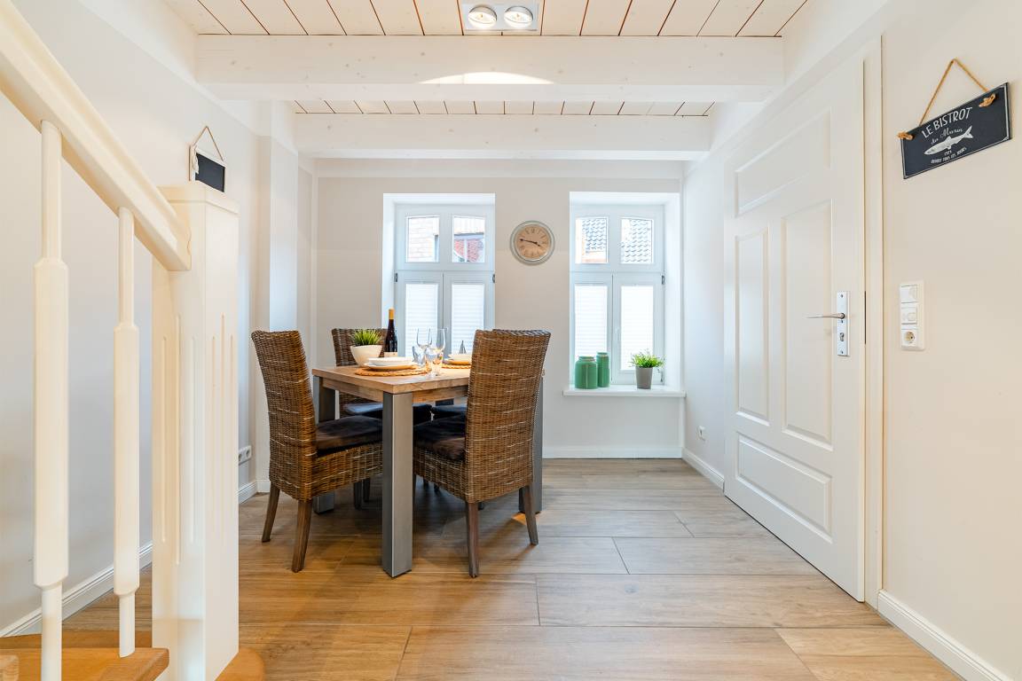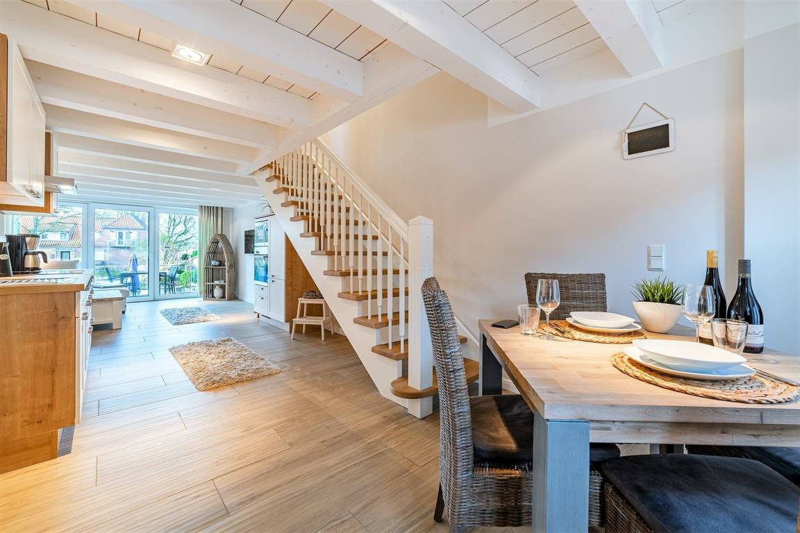 Das "Haus am Siel" besteht aus zwei Haushälften, hier ist die Rechte beschrieben. Sollten Sie mit mehr als 4 Personen reisen, kann die zweite Haushälfte (Haus am Siel 01) zusätzlich gebucht werden, über die offen gestaltete Terrasse erreichen Sie beide Haushälften.