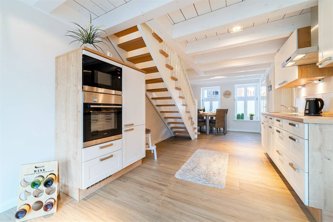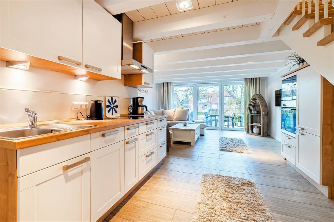 Das beliebte Ferienhaus befindet sich ganz zentral im historischen Zentrum Greetsiels, von hier aus sind es nur 150m zum Hafen. Es liegt ruhig in einer Seitenstraße und verfügt über direkten Wasserzugang mit wunderschöner Terrasse am Greetsieler Sieltief. Nach der aufwändigen Renovierung ist das Haus mit seiner modernen, wohnlichen und liebevollen Einrichtung ein gemütlicher Rückzugsort mit direktem Blick auf das Wasser. Neben einer offenen Küche, zwei Schlafzimmern und einem großen Badezimmer im Obergeschoss verfügt das komfortable Haus ebenfalls über ein Gäste-WC im Erdgeschoss. Ihre Fahrräder können Sie auf der Gemeinschaftsterrasse parken.
