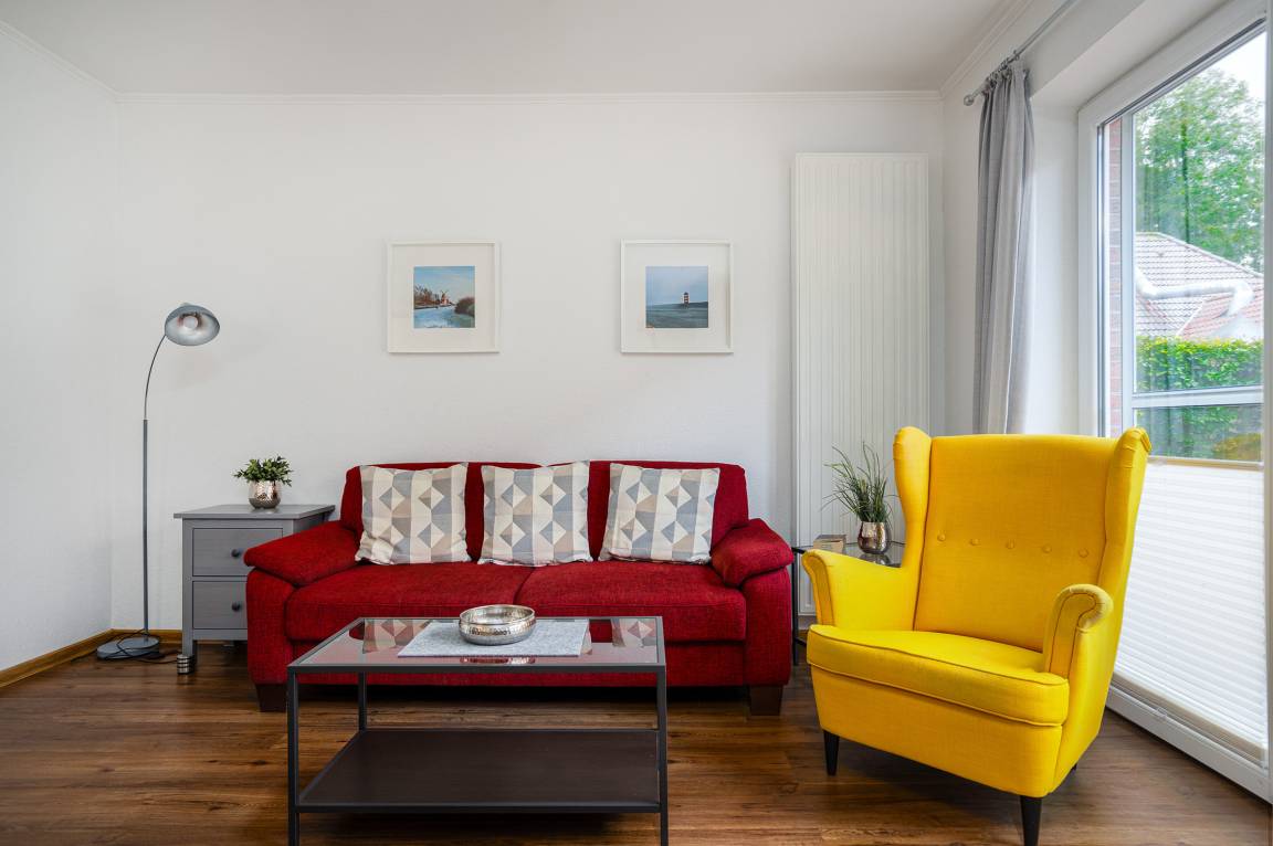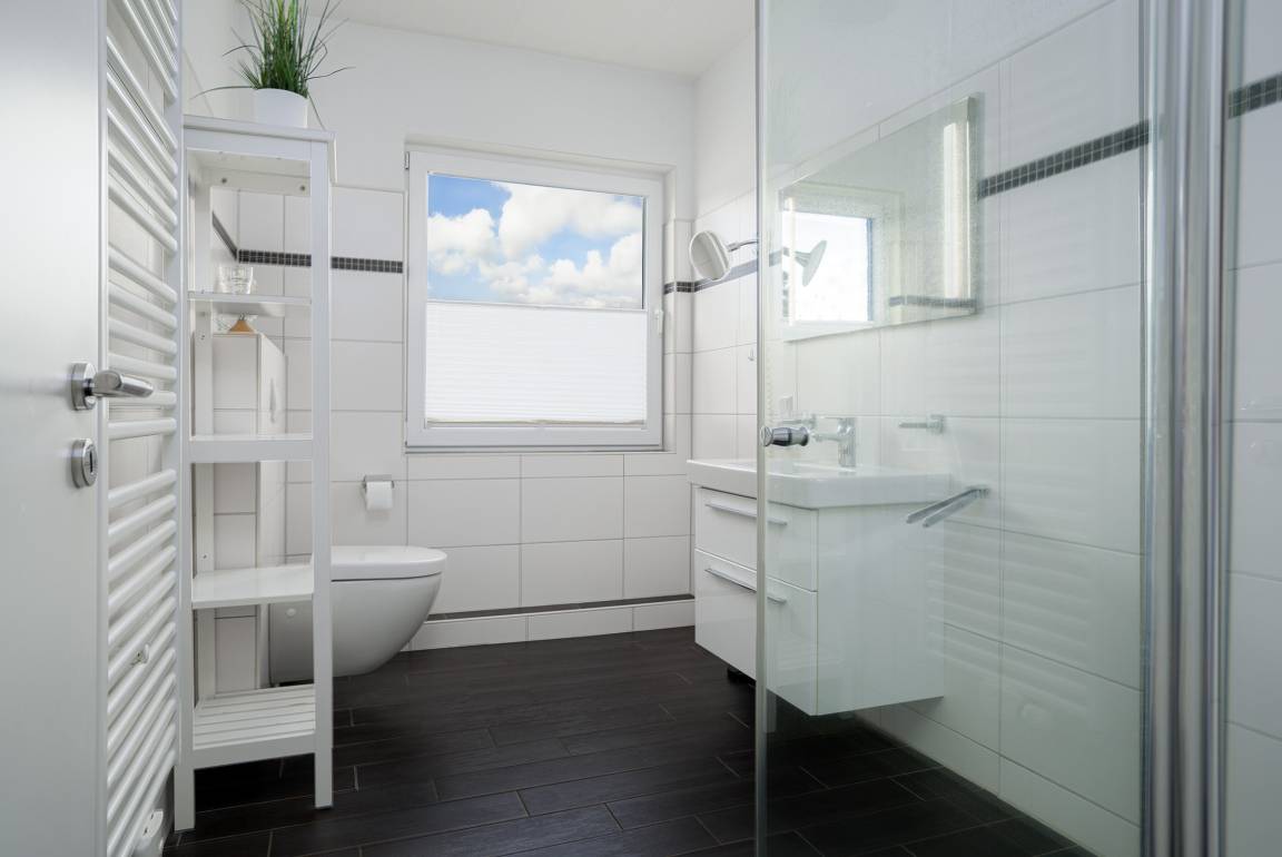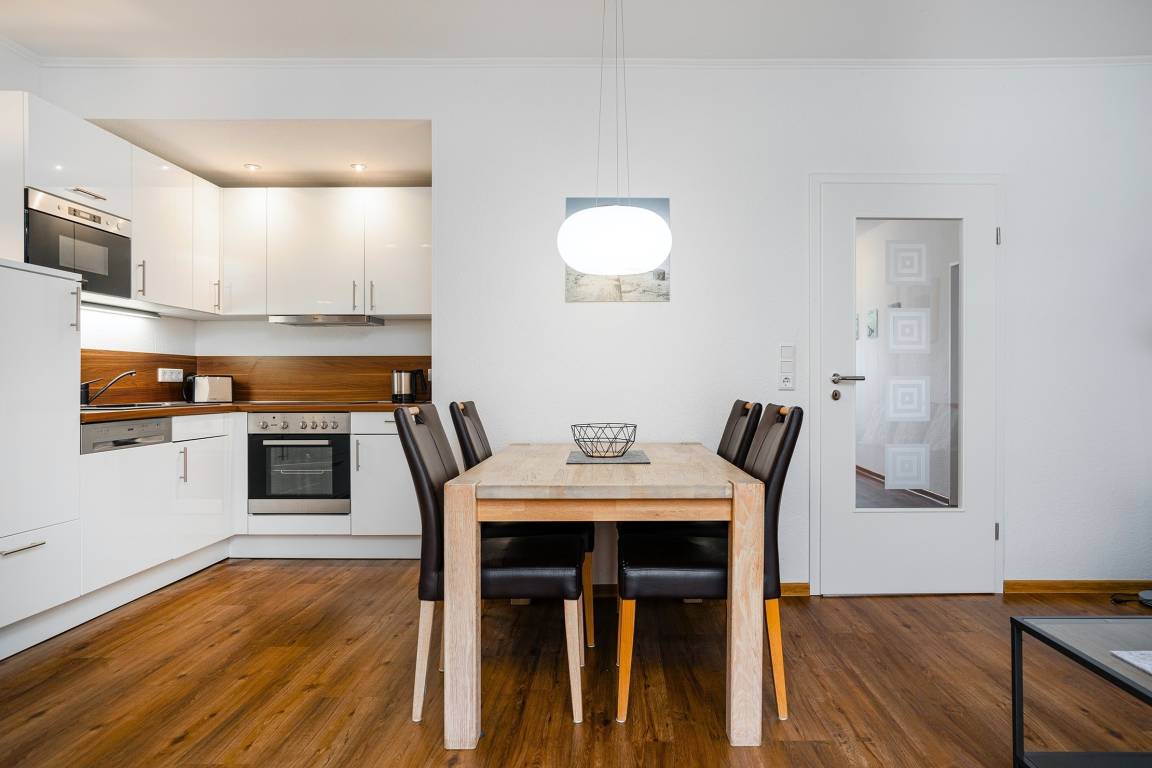 Unsere Wohnung "Nordwind SÜD" bietet die perfekte Kombination aus zentraler Lage und entspannter Privatsphäre. Auf etwa 80qm finden Sie zwei einladende Schlafzimmer mit einem Doppel- und einem Boxspringbett und ausreichend Ablagefläche und somit ist sie ideal für Familien oder Paare geeignet. Der großzügige Wohnbereich bietet neben einer voll ausgestatteten Einbauküche eine gemütliche Sitzecke. Das Tageslichtbad ist hell und mit einer ebenerdigen Dusche ausgestattet. Besonders hervorzuheben ist zum Einen der eigene Parkplatz an der Wohnung sowie die private Terrasse hinterm Haus, auf die Sie sich zurück ziehen und die frische Luft genießen können. Ihr Vierbeiner ist in dieser Wohnung ebenfalls herzlich willkommen!