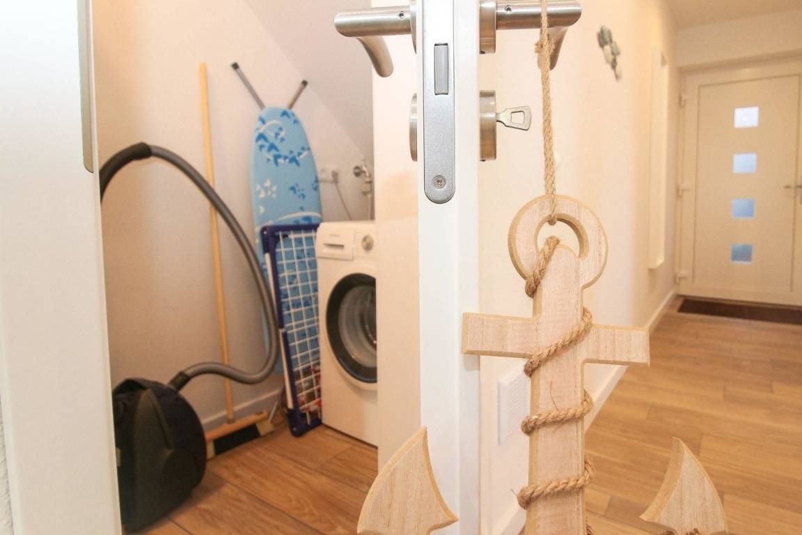 Eine Erstausstattung (Spülmaschinentab, WC-Papier, kl. Flasche Spülmittel, Spültuch und Topfschwamm) ist vorhanden.