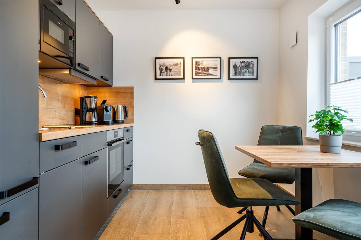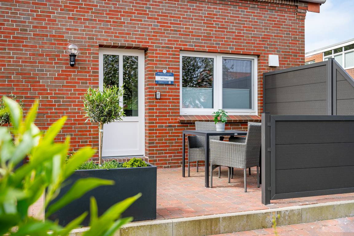 Sie wohnen gerne ganz zentral und wünschen es dennoch ruhig? Dann ist unsere Wohnung "In't Dörp 1" perfekt für Sie! Denn egal ob zum Hafen, zu den Geschäften, Restaurants und Cafés oder zu den Zwillingsmühlen - alles ist nur einen Katzensprung entfernt, denn eine bessere Lage in Greetsiel findet man kaum. In zweiter Lage in der Mühlenstraße gelegen verfügt diese frisch sanierte Erdgeschoss Wohnung sogar über einen eigenen kleinen Garten mit Terrasse und einen Parkplatz direkt am Haus. Somit ist sie vor allem für Gäste, die nicht mehr so gut zu Fuß sind das ideale Urlaubsdomizil. Auf etwa 55qm bietet sie einen gemütlichen Wohnraum, eine helle, modern und voll ausgestattete separate Küche mit Esstisch, ein Schlafzimmer, ein großzügiges Badezimmer sowie einen kleinen Abstellraum. Sie ist mit viel Liebe zum Detail ausgestattet und die ausgewählten Bilder zeigen alte traditionelle Schauplätze Greetsiels.