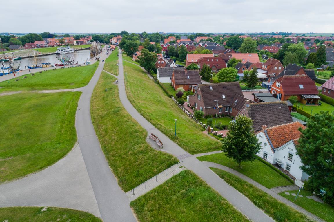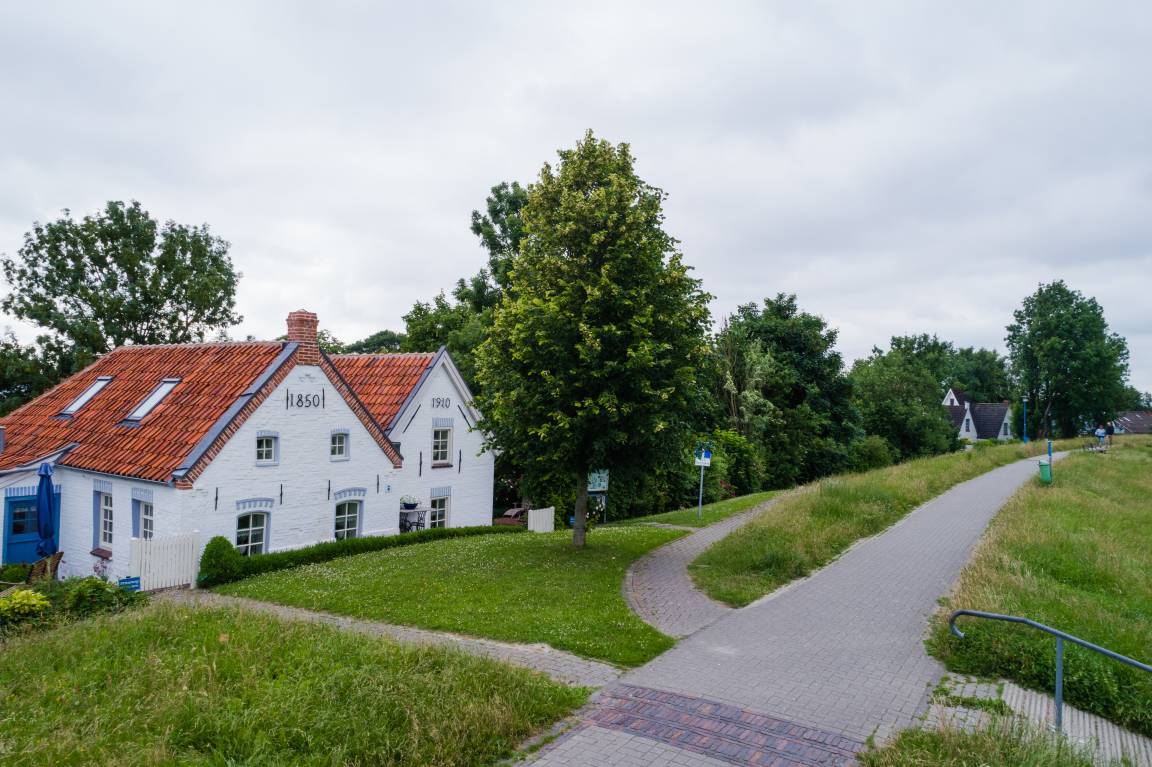 Das Huus an't Diek von 1910 liegt so zentral, dass Gäste sagen: Hier erleben wir Greetsiel aus der ersten Reihe heraus.