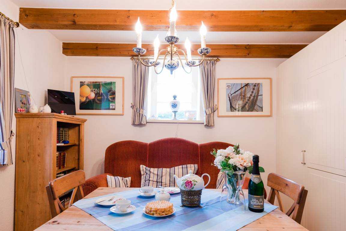 Außergewohnliches Ferienhaus direkt am Hafen von Greetsiel. Das Huus an't Diek von 1910 misst 62 qm und passt bestens für bis zu 3 Personen.