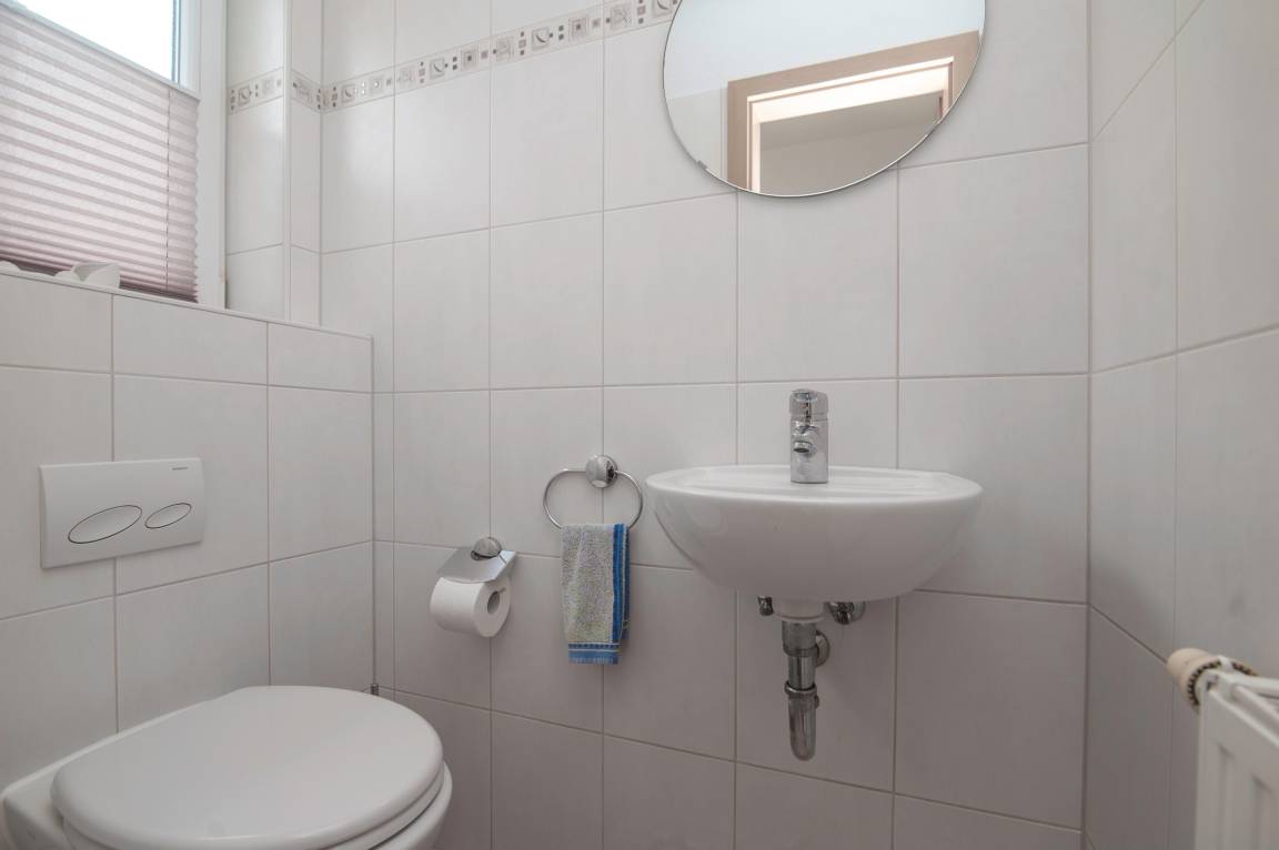 Im Erdgeschoß befindet sich der großzügige Wohn-/Essraum mit einem 32" TechniSat FullHD LED-TV, inkl. separater voll ausgestatteter Küche: Herd mit Cerankochfeld, Mikrowelle, Dunstabzugshaube, Kühlschrank mit Gefrierfach, Geschirrspüler, Filterkaffee und Kaffeepadmaschine, Mixer, Eierkocher, Pürierstab u.v.m. sowie ein Gäste-WC. Ein DSL WLAN-Gastzugang ist vorhanden.