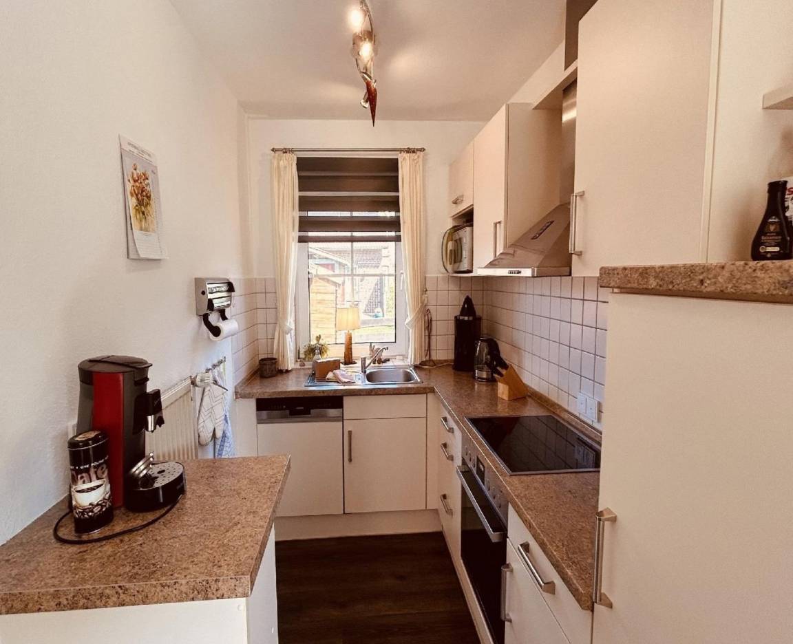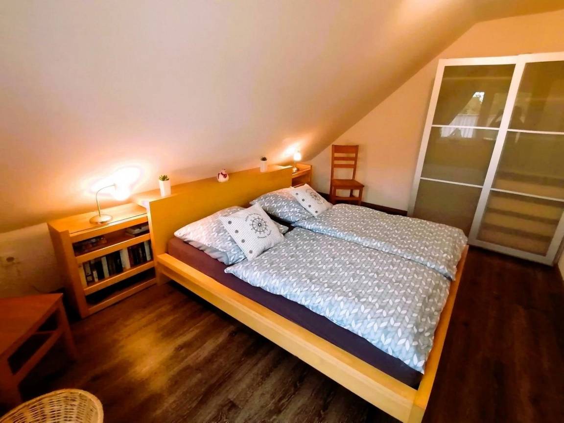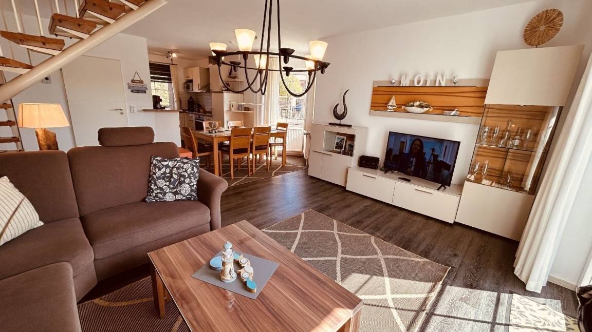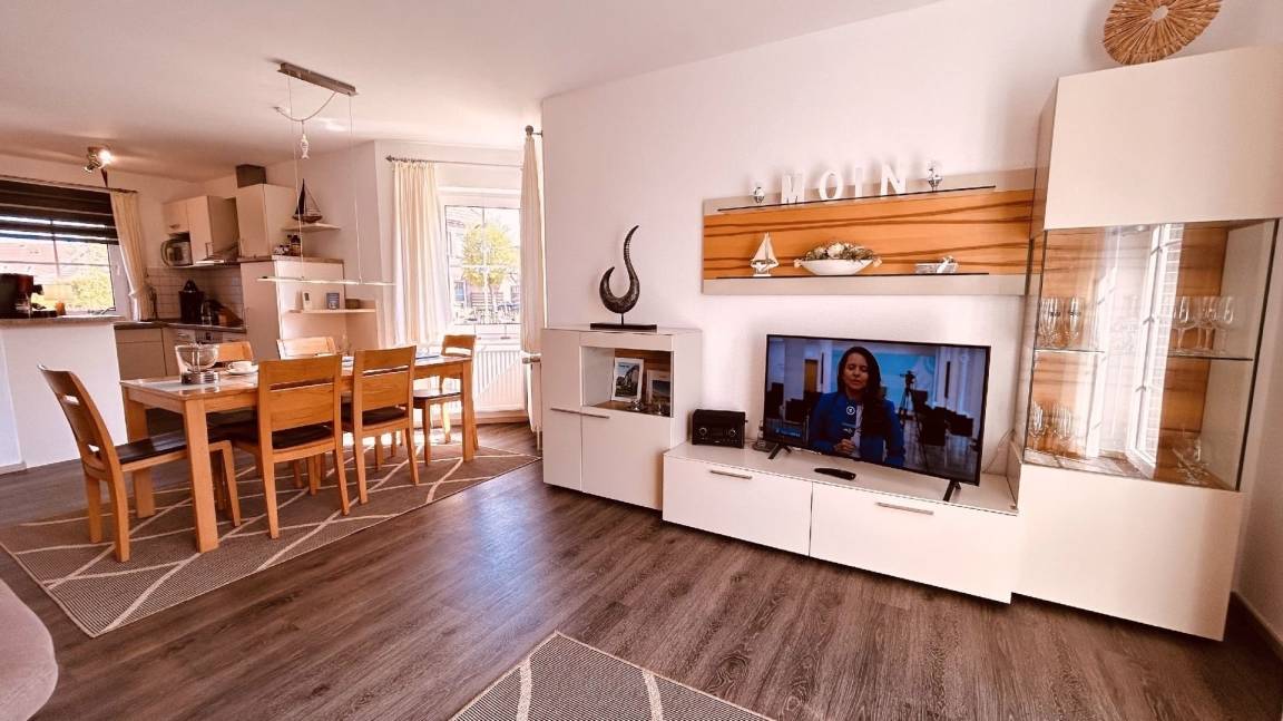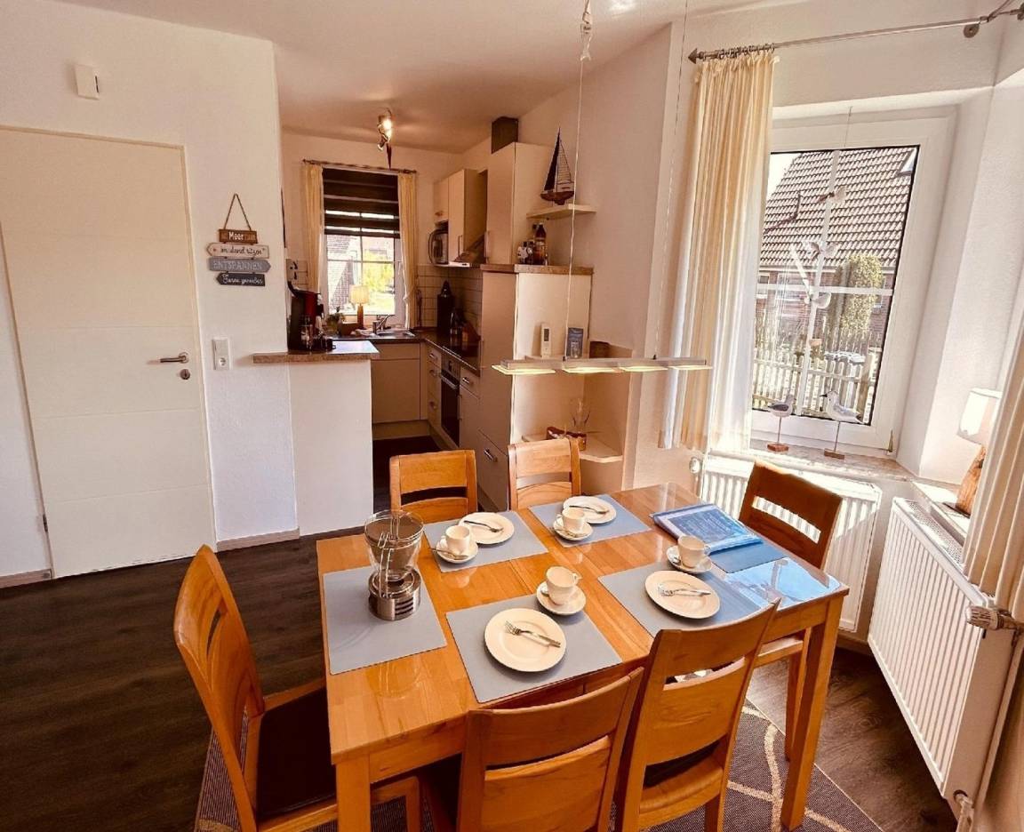 Dieses Ferienhaus bietet Ihnen viel Platz und Ruhe, um einen erholsamen Urlaub mit der ganzen Familie zu verbringen.Das Haus ist durch die großzügigen Fenster, im Wohn- und den Schlafbereichen, hell und freundlich. Das geräumige Wohnzimmer mit Essbereich, und die gut ausgestattete Küche, sorgen für ein angenehmes Wohnambiente.Im Obergeschoss befinden sich 2 Schlafzimmer:1 Schlafzimmer mit Doppelbett (90 x 200 cm je Matratze), Nachtkonsolen mit Nachttischlampen, Schiebetüren-Kleiderschrank und Kinderreisebett (ohne Matratze).1 Schlafzimmer mit zwei Einzelbetten (je 90 x 200 cm), Nachtkonsole mit Nachttischlampe, HiFi-Anlage und Kleiderschrank.Im modernen Tageslichtduschbad befindet sich neben dem WC eine fast ebenerdige Dusche, Spiegelschrank, Waschtisch mit Schubladen, Kosmetikspiegel und Fön.Durch die Eingangstür gelangen Sie in den Flur mit Gäste-WC.Im Wohnzimmer befindet sich die offene Küche mit viel Stauraum. Der Esstisch, für bis zu 6 Personen, steht an den Erkerfenstern und lädt zum gemütlichen Essen und Sitzen ein.Auf der Sofalandschaft können Sie verweilen und durch die Terrassentüren Sie in den Garten sehen.Falls Sie sich beim Fernsehen entspannen möchten, stehen Ihnen Flachbild SAT/Kabel TV mit Blue-Ray-Player und Hi-Fi-Anlage zur Verfügung. W-LAN mit Gastzugang (Surfen und E-Mail) und Telefon stehen Ihnen kostenfrei zur Verfügung.In der voll ausgestatteten Küche finden Sie:GeschirrspülmaschineKühlschrank mit GefrierfachMikrowelleCeran Kochfeld mit BackofenKaffeemaschineSenseo PadmaschineWasserkocherToasterWaffeleisenMixerBack-UtensilienAuf der Terrasse (Süd-West-Richtung) können Sie an entspannten Tagen und Abenden die Sonne genießen. Gartenstühle mit Auflagen, Sonnenliegen, Sonnenschirm und ein Grill stehen Ihnen zur Verfügung.Im Terrassenabstellraum steht auch eine Waschmaschine die Sie nutzen können.Inklusivleistungen:Endreinigung, Nebenkosten, W-LAN, Parkplatz, abschließbarer FahrradraumBettwäsche und Handtücher können gerne gegen eine Gebühr zur Verfügung gestellt werden.Wäschepaket: Bettwäsche & Handtuchpaket (1 Duschtuch/2 Handtücher) pro Person 15,00 Euro.Der Kurbeitrag und ggfls. geliehene Wäsche werden vor Anreise auf das Eigentümerkonto überwiesen.
