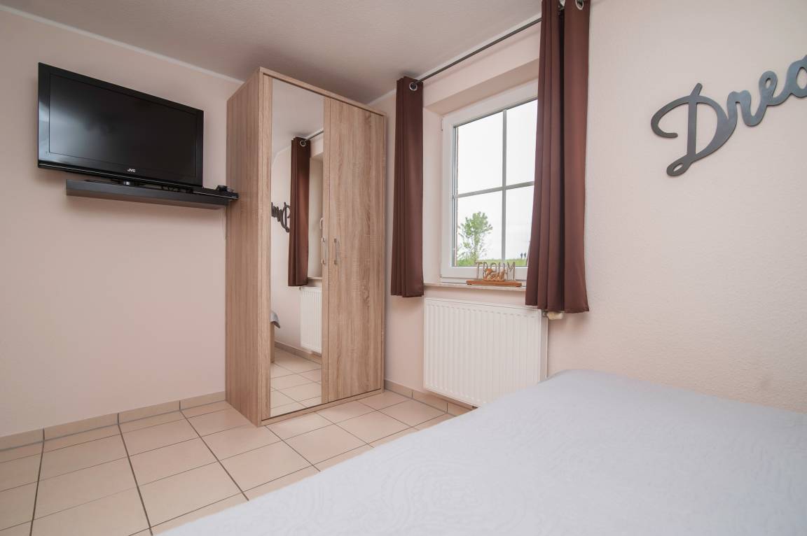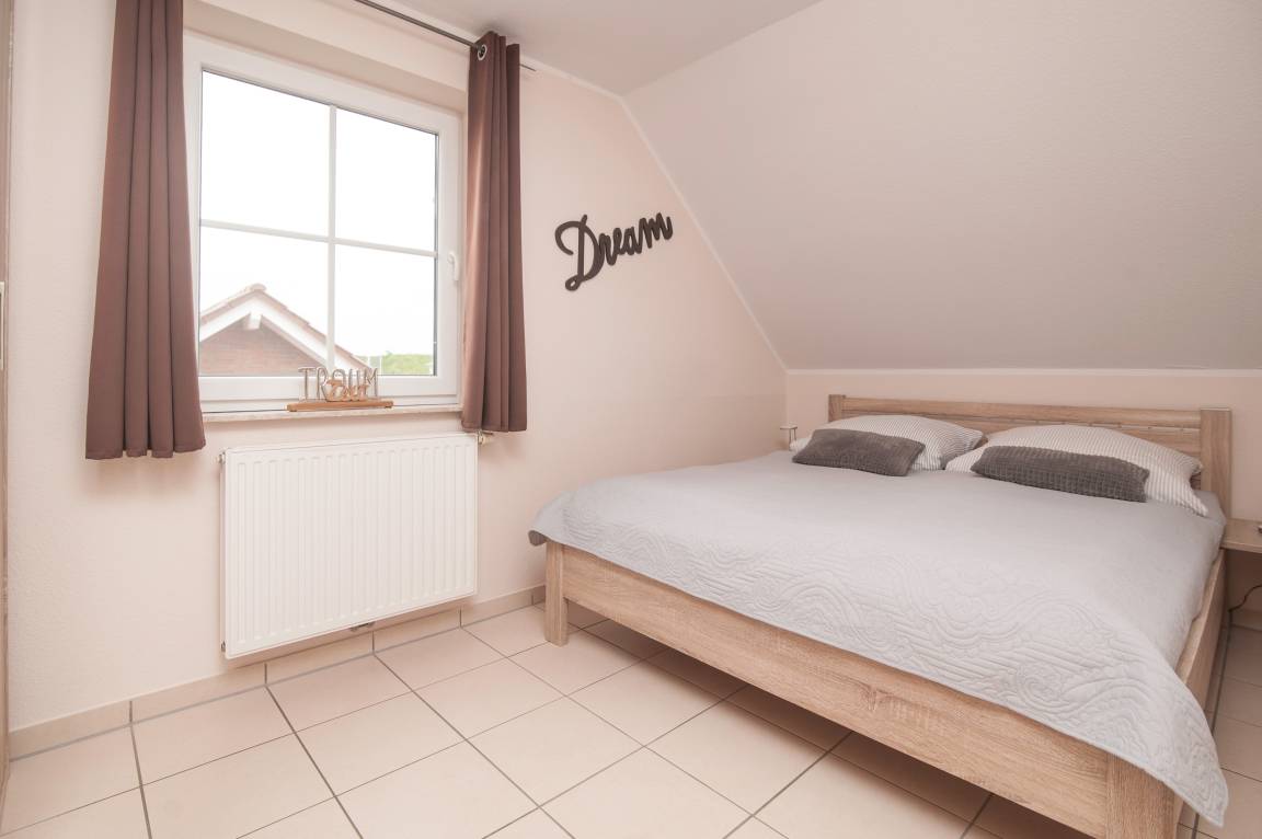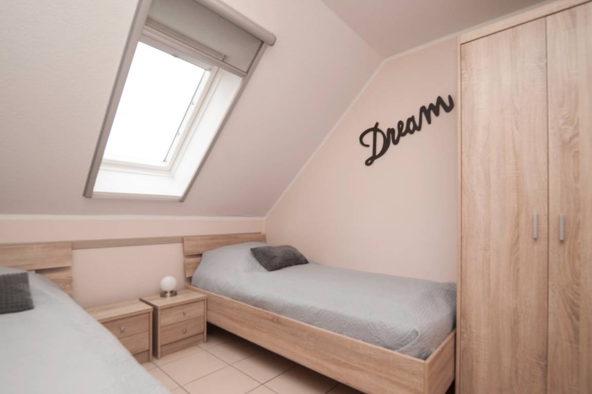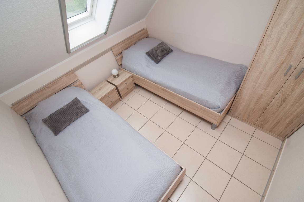 Ein Schlafzimmer mit Doppelbett (1,60 m x 2,00 m) und ein Schlafzimmer mit 2 Einzelbetten (je 0,80 x 2,00 m) Mit Plissees und Vorhang ausgestattet.