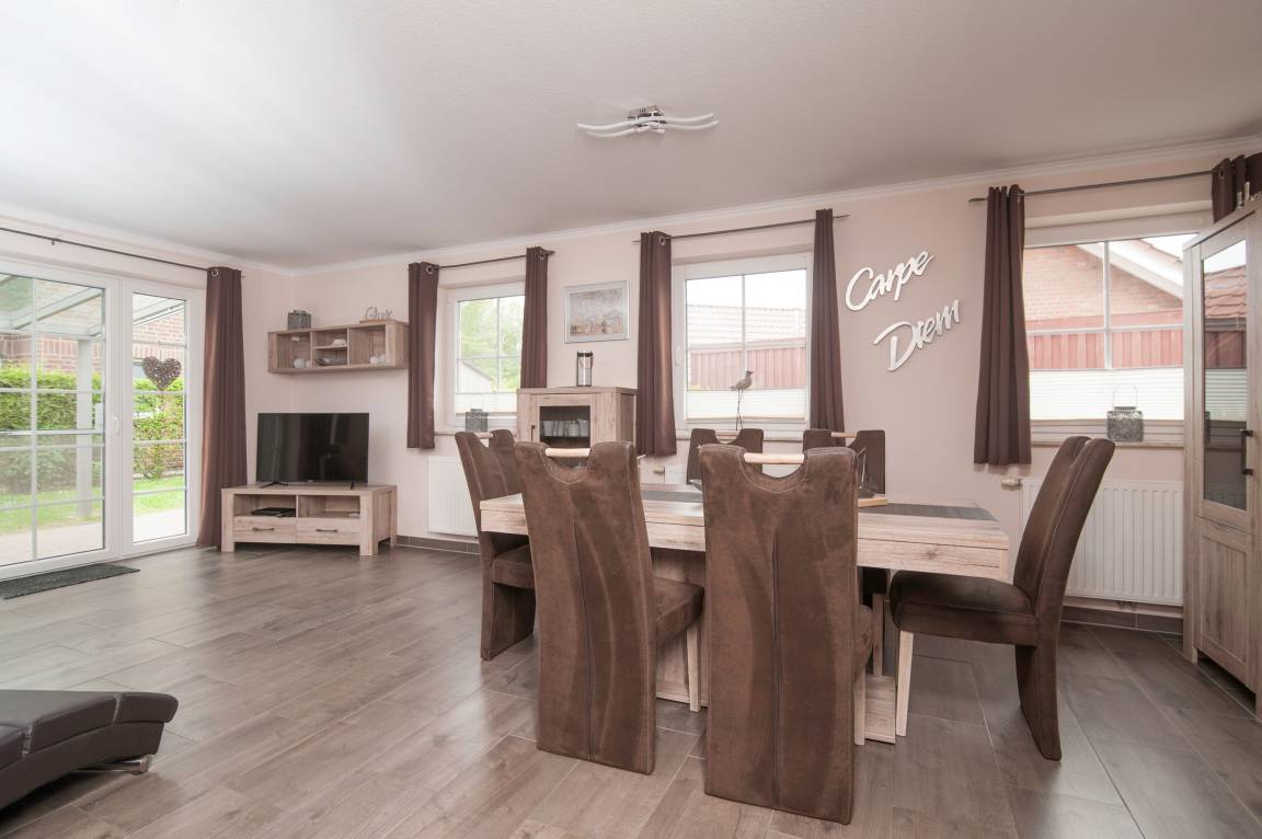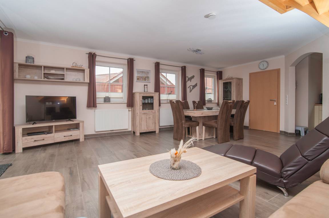 Im Erdgeschoß befinden sich ein großzügiger Wohn-/Essbereich mit 43"Hisense LED-TV, DVD-Player, ein DSL WLAN-Gastzugang ist vorhanden.