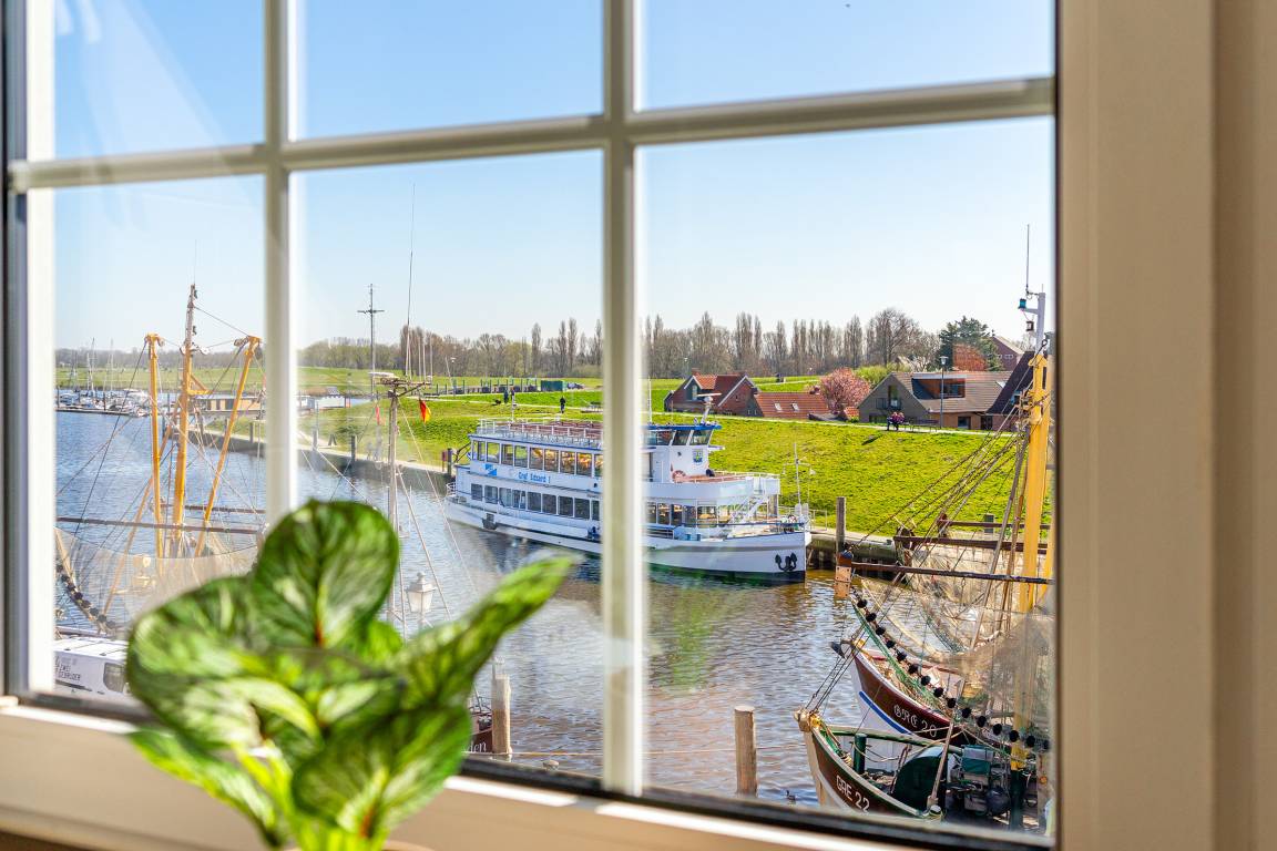 Diese großzügige 90qm große Obergeschoss Wohnung "Kutterblick" befindet sich in einzigartiger Lage mitten im Hafen von Greetsiel – direkt über dem traditionellen Restaurant "Fischerhus". Die Wohnung vereint modernen Komfort mit traditionellem Charme: Während einige Räume stilvoll renoviert wurden, bewahren andere ihren gemütlichen, klassischen Charakter. Zwei Schlafzimmer und eine geräumige abgeschlossene Küche bieten ausreichend Platz für einen entspannten Aufenthalt mit der Familie oder Freunden. Hierfür eigenen sich auch die beiden vorhandenen großzügigen Tageslichtbäder, wovon eines mit Badewanne und eines mit Dusche ausgestattet ist. Letzteres bietet beim Duschen sogar eine unglaublichen Weitsicht in den Hafen, der perfekte Start in den Tag. Der großzügige Wohnbereich lädt mit seinem Kamin und dem traumhaften Blick auf die Kutterflotte zum Verweilen ein. Nach einem erlebnisreichen Tag können Sie in der hauseigenen Sauna entspannen und die maritime Atmosphäre genießen. Ein perfekter Rückzugsort für alle, die das Klassische suchen und sehr zentral wohnen möchten.