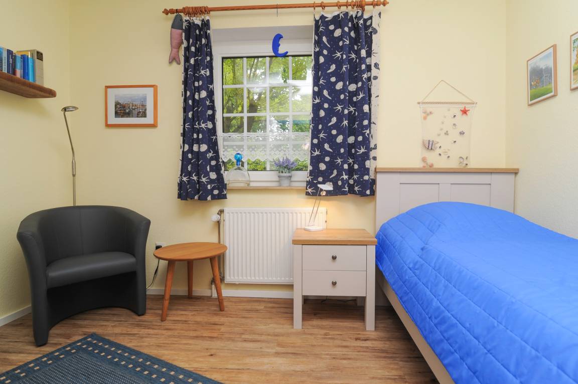 In der Wohnung gibt es zwei Schlafräume: Ein Schlafzimmer mit einem Doppelbett (getrennte Matratzen 90 x 200 cm) und ein weiterer Raum mit einem Einzelbett (90 x 200 cm).